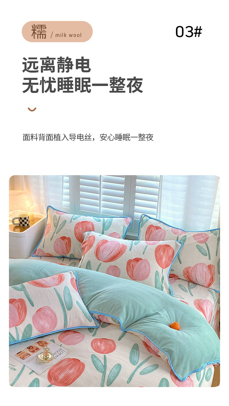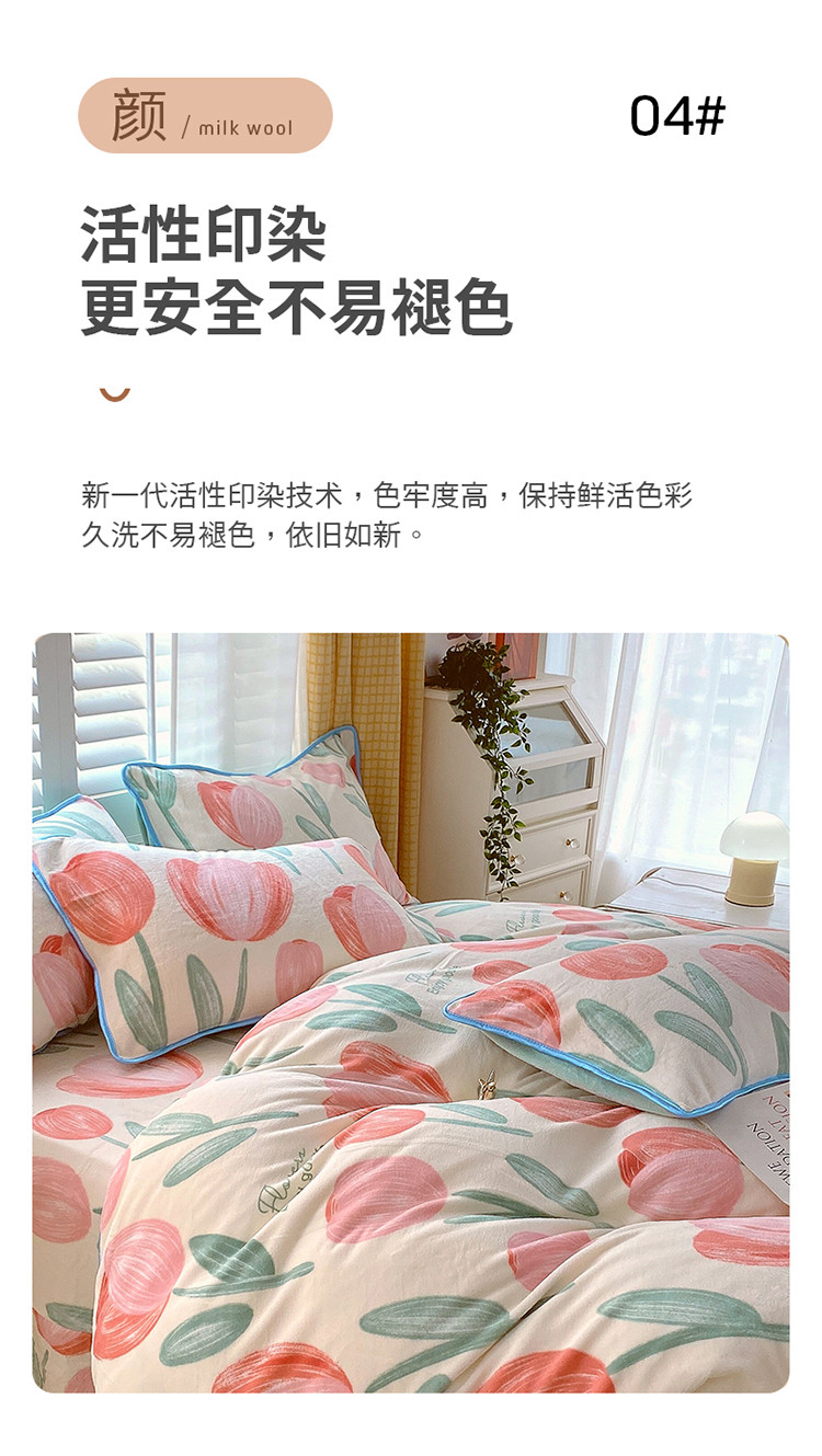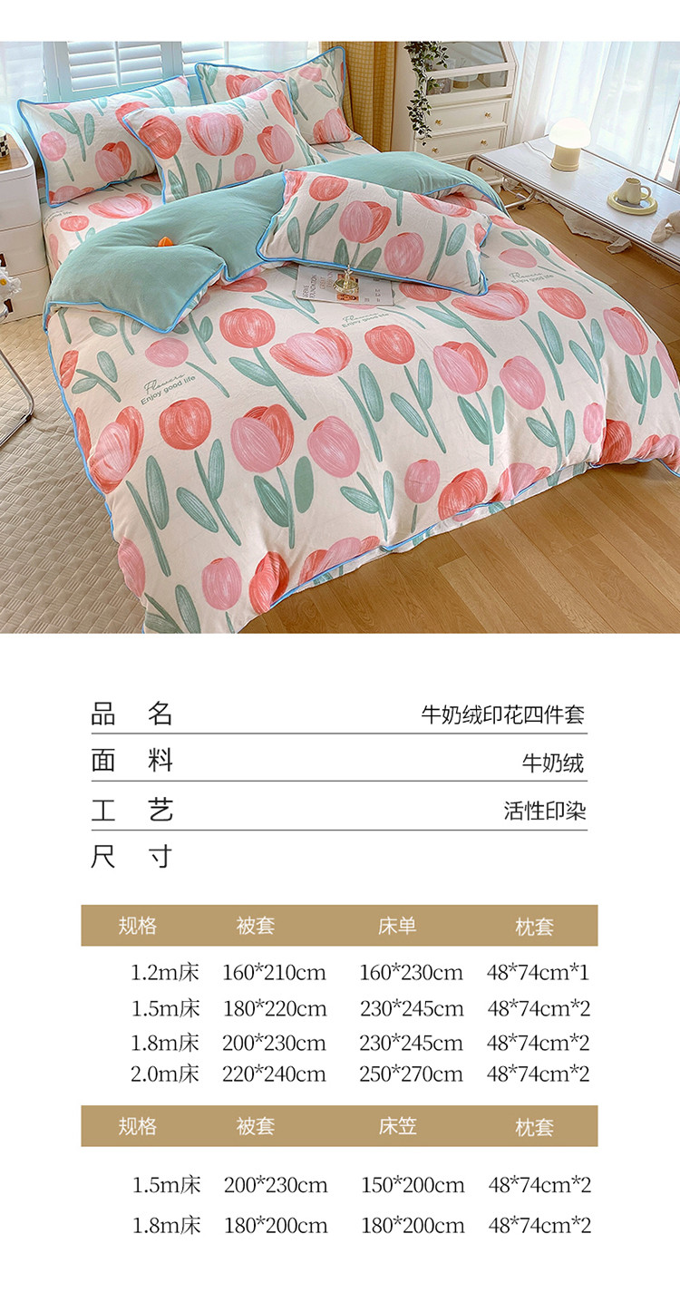 商品名称:金鑫汇 2022新款牛奶绒四件套系列-单床笠 郁金香-粉