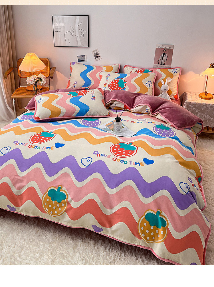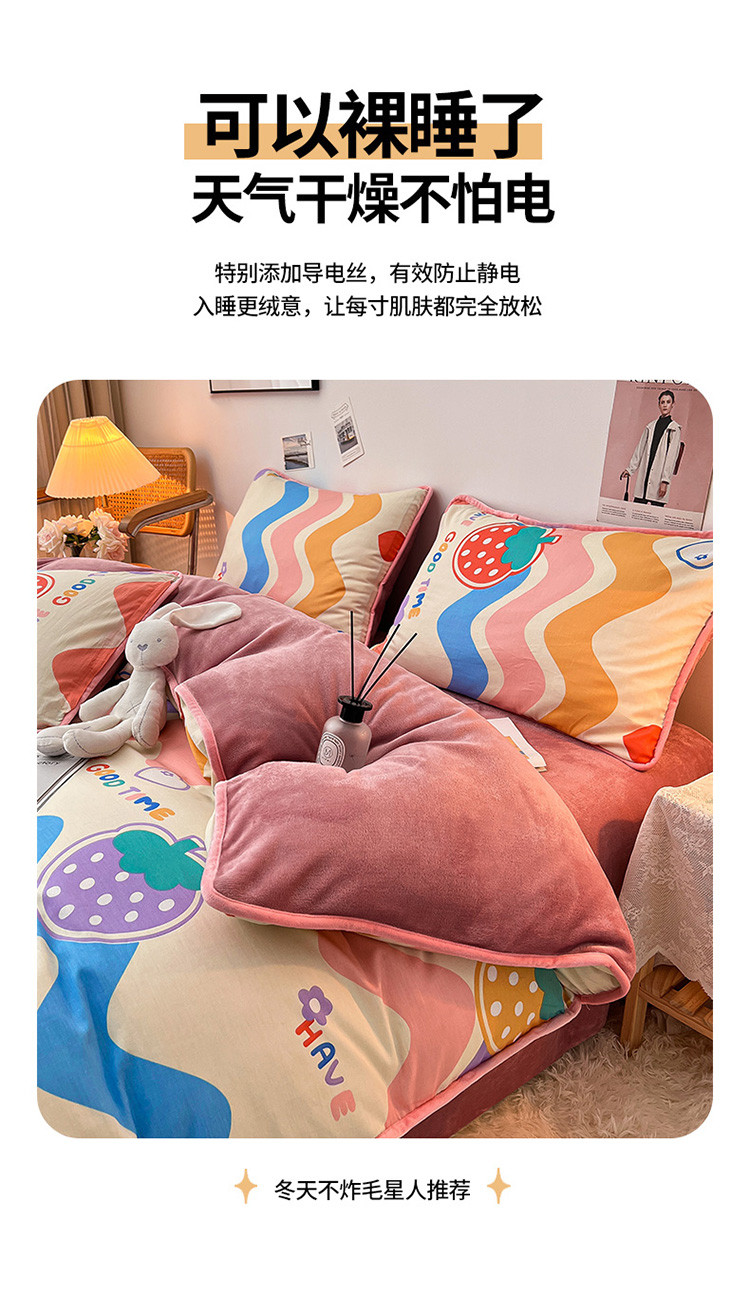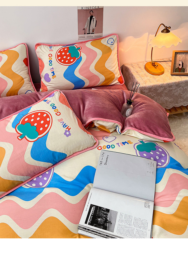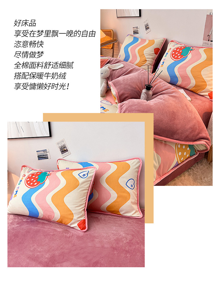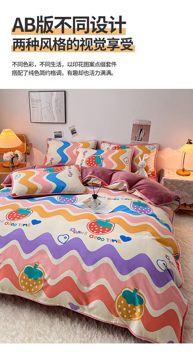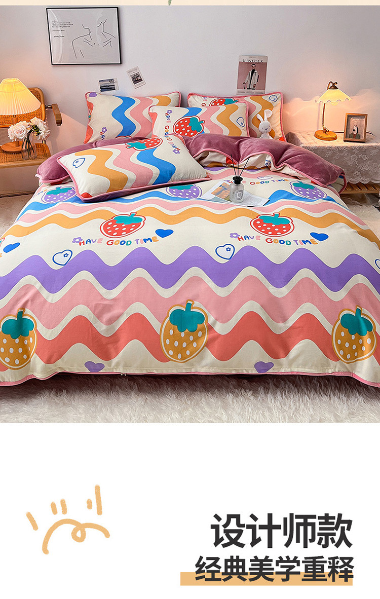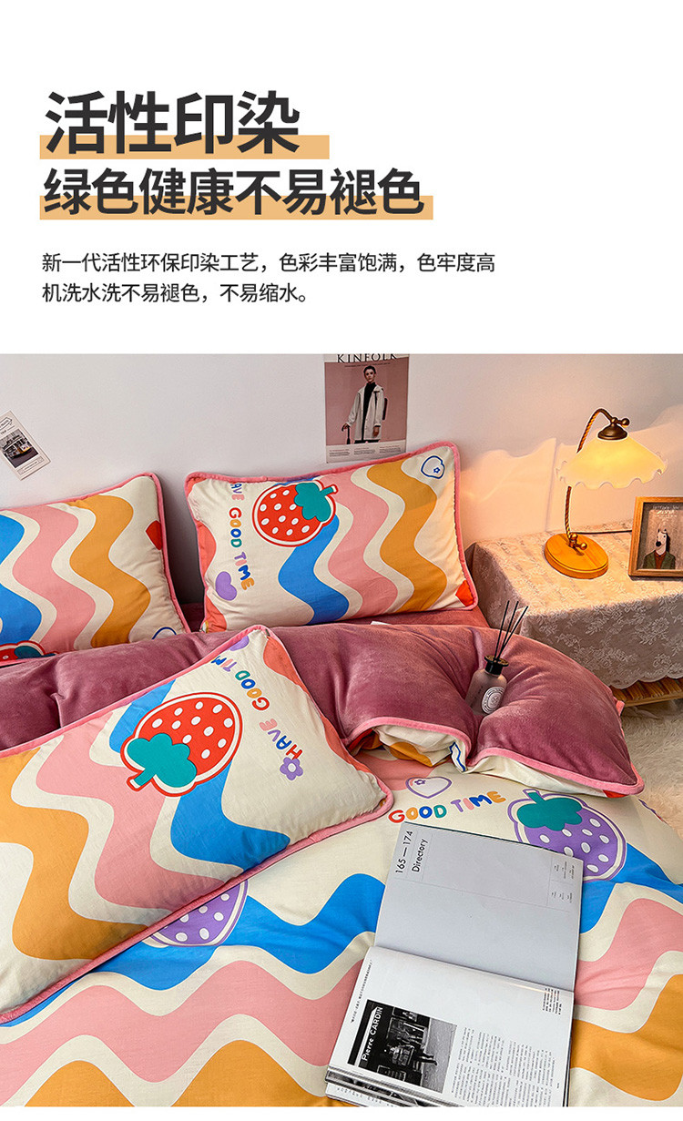 当前位置: 91家纺网 > 商品网购 > 床品套件 > 四件套 > 牛奶绒四件套 > 芃成 2022新款A棉B绒印花四件套 草莓果乐