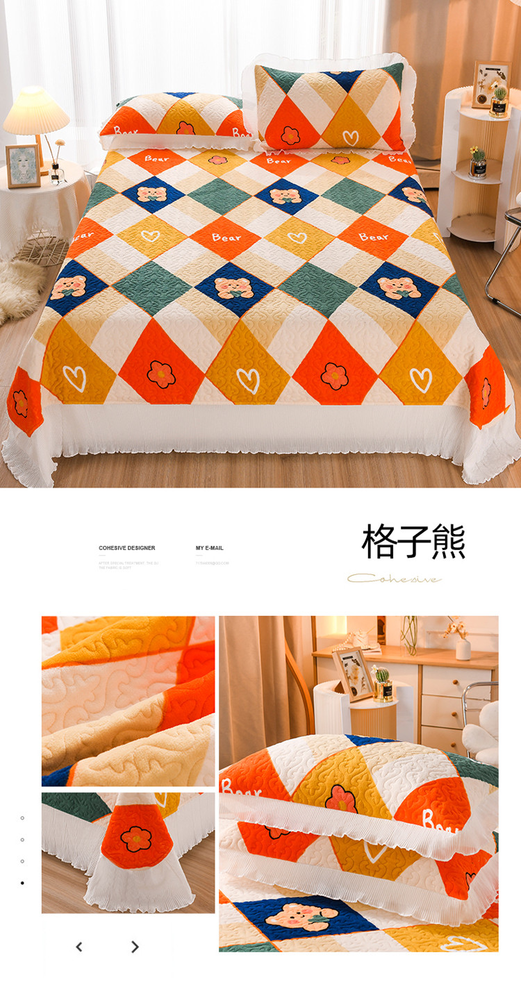商品名称:迷仙巢 2022新款牛奶绒床盖款 格子熊