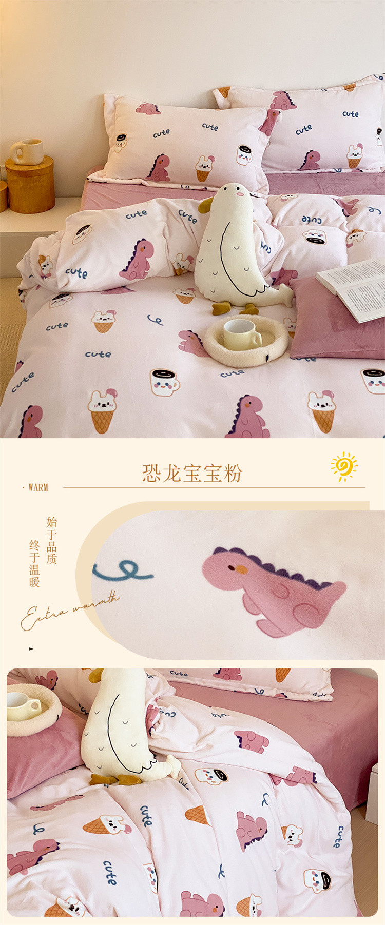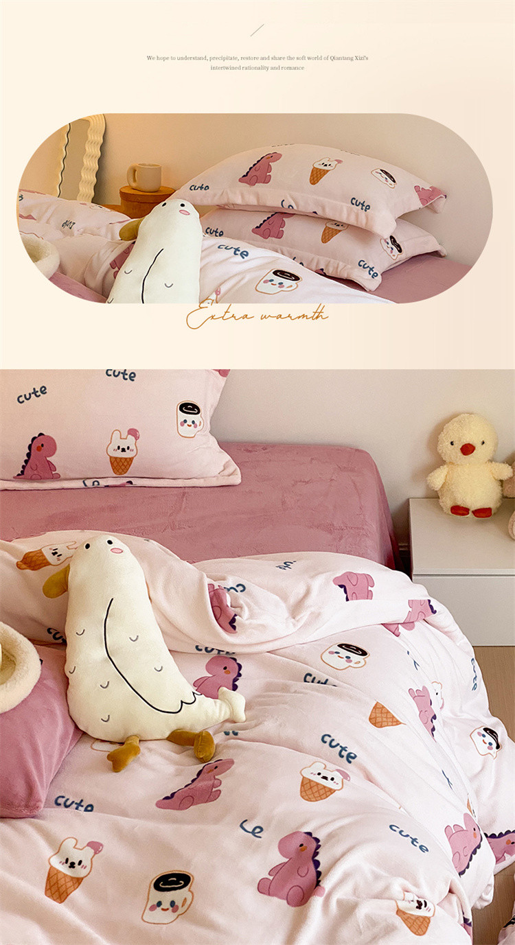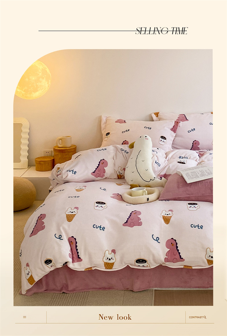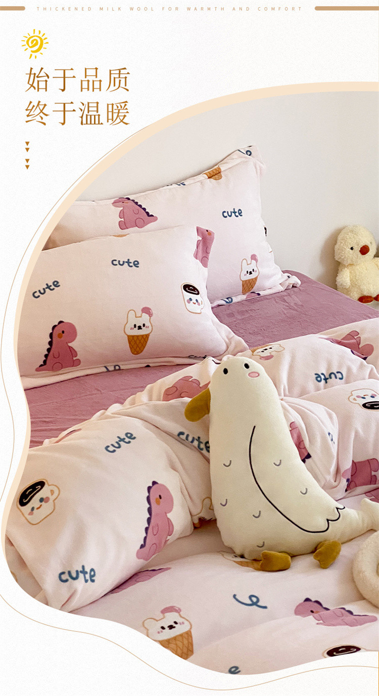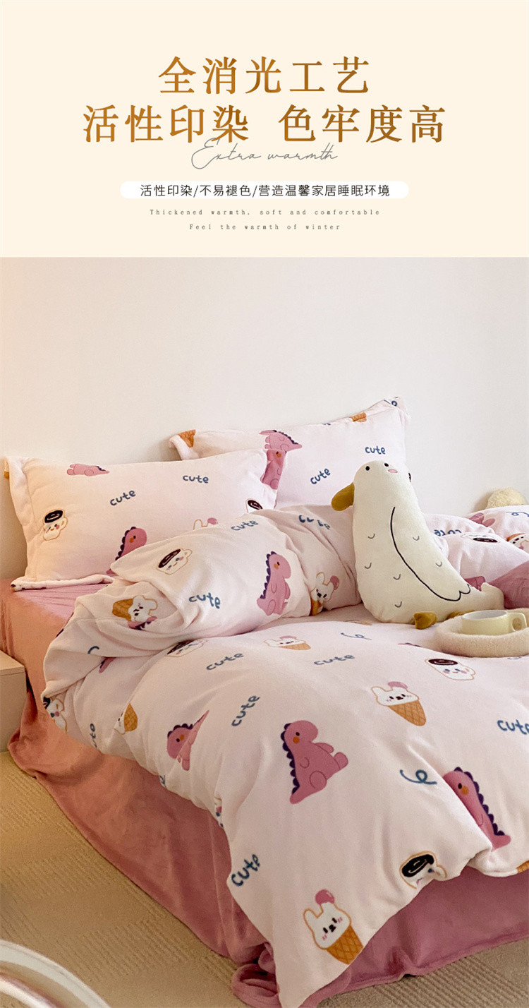 当前位置: 91家纺网 > 商品网购 > 床品套件 > 四件套 > 牛奶绒四件套 > 时光里 2022新款230g正宗全消光印花牛奶绒四件套 恐龙宝宝粉