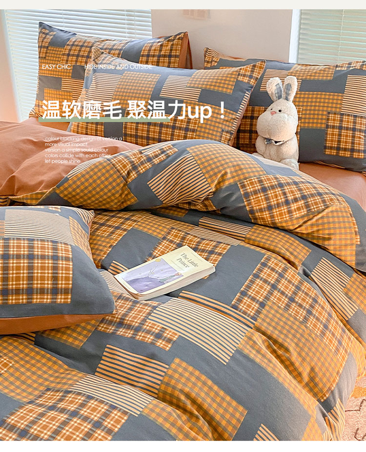 (总)雅居纺家纺 2025新款简约兔绒球球保暖舒适四件套-波点,波点-白咖,波点-粉黄,波点-咖,波点-蓝黄