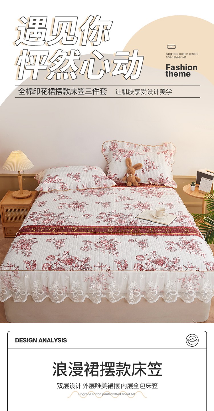 (总)宜凡家纺 2025新款全棉数码印花床裙三件套系列一,静若幽兰,浮云织梦,梦幻花园,陌上花开