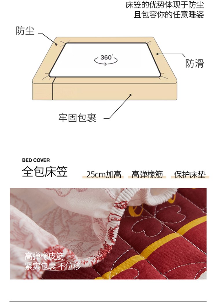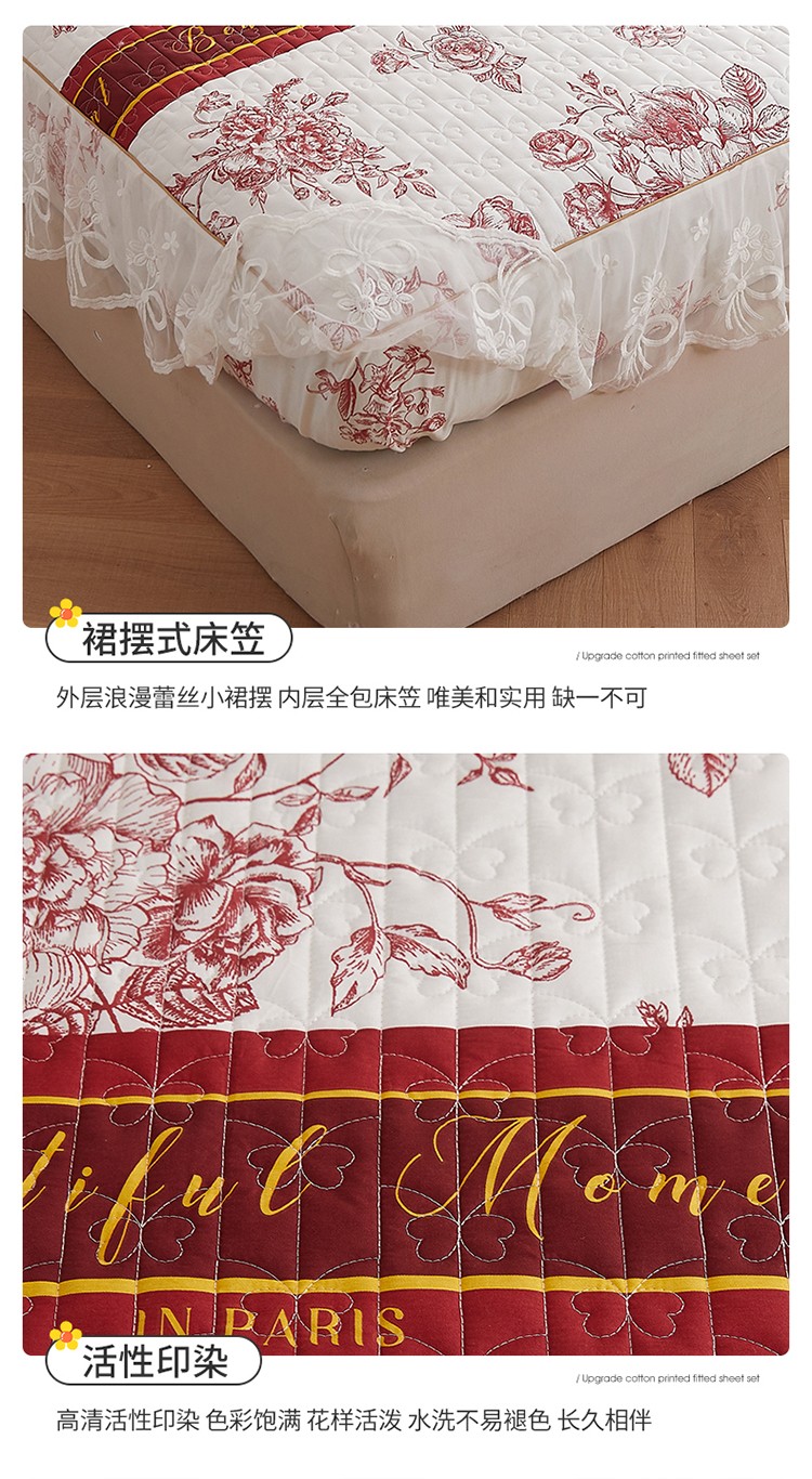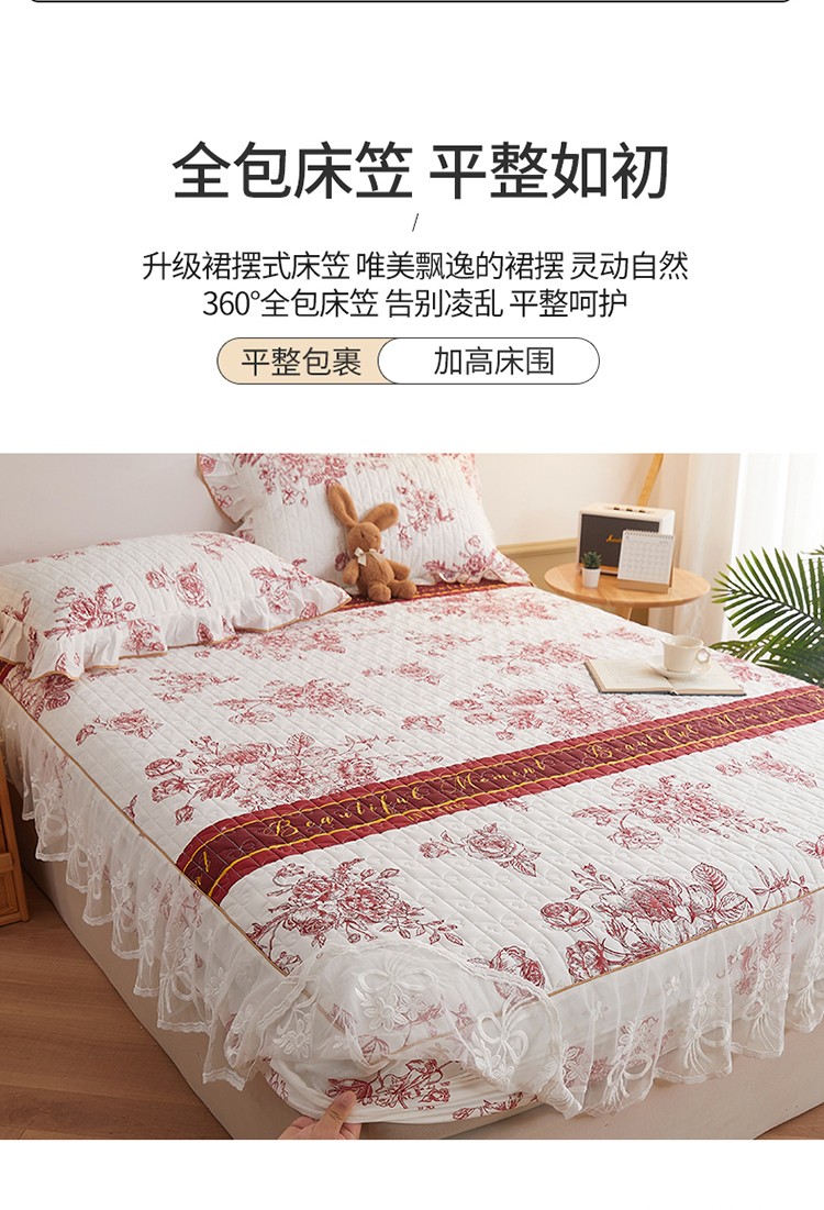 (总)宜凡家纺 2025新款婴儿绒压花全夹棉床裙四件套,韵雅-中国红,韵雅-黑天鹅