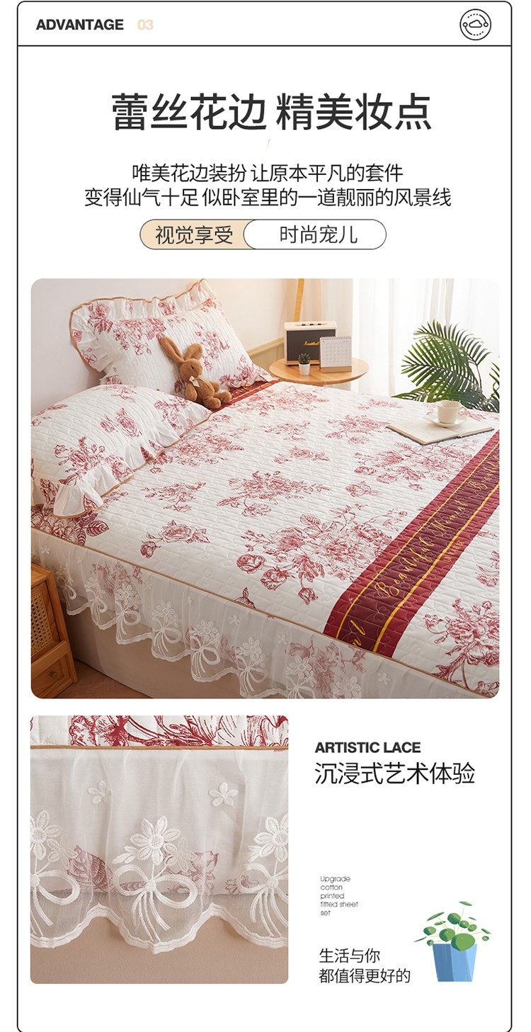 商品名称:宜凡 2023新款四季款夹棉小清新床笠三件套 写意