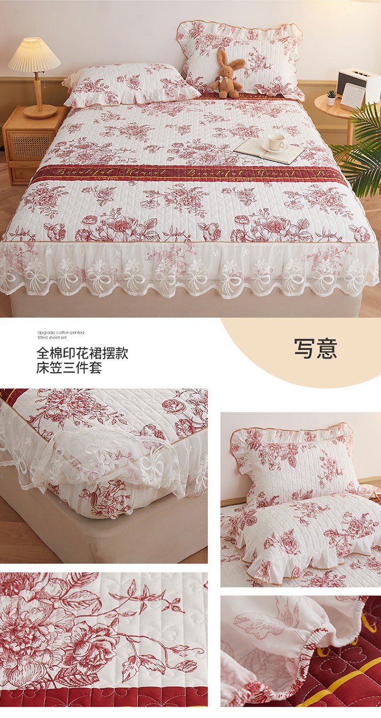 宜凡 2023新款四季款夹棉小清新床笠三件套 写意