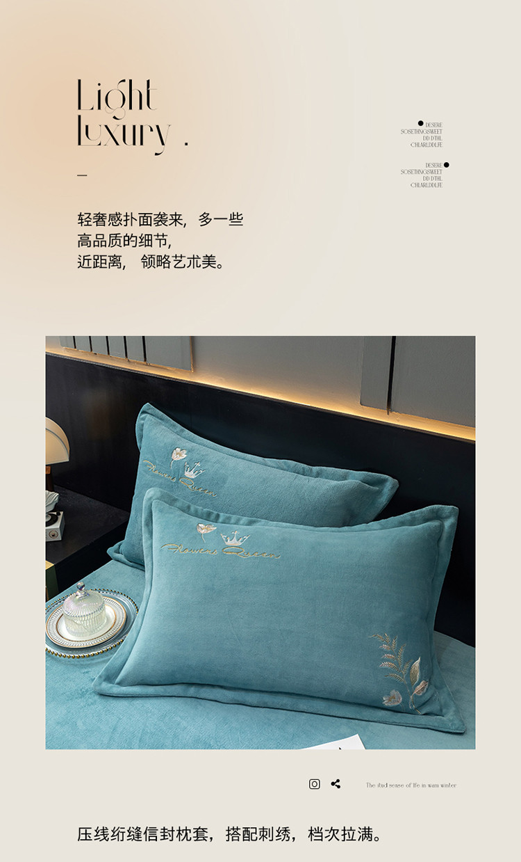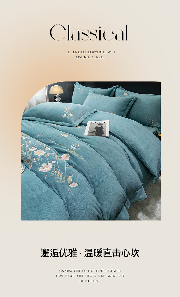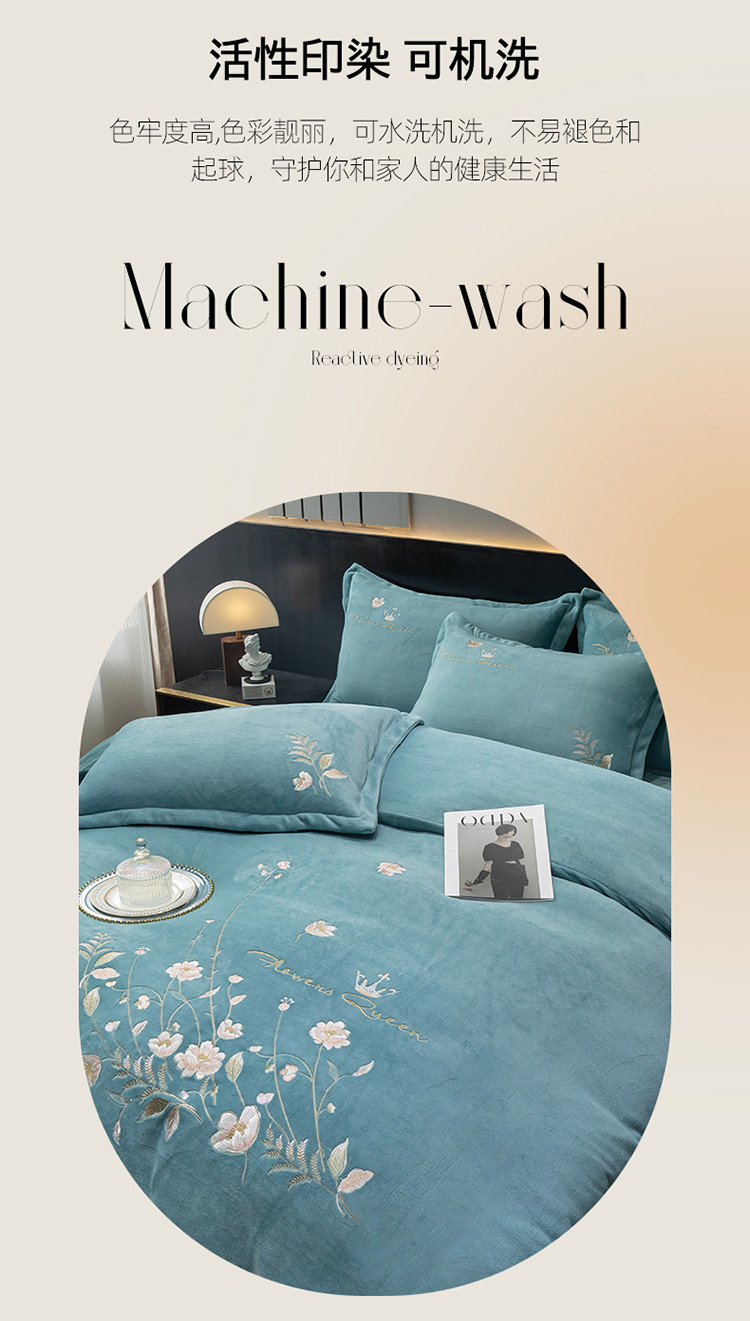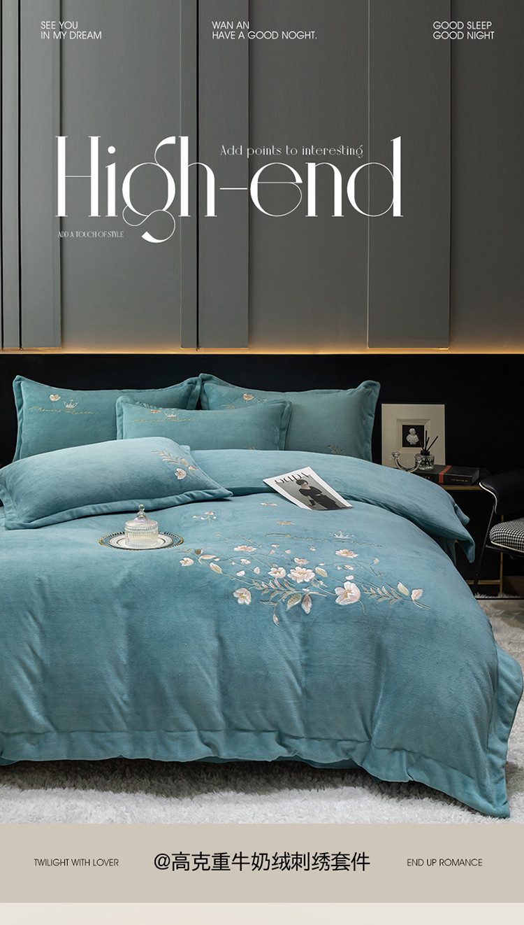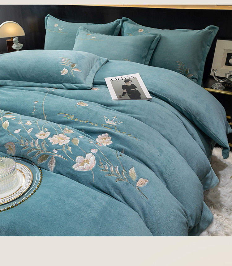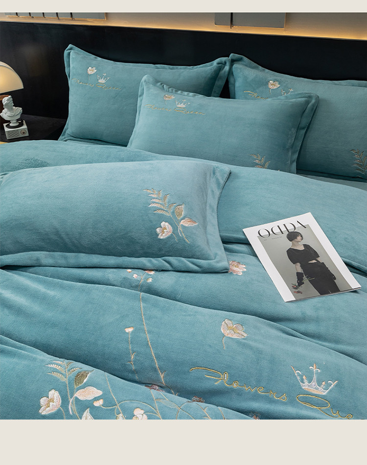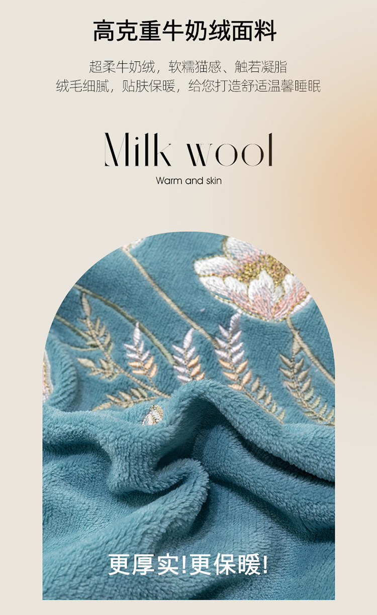 商品名称:塔塔 2025新款高克重牛奶绒刺绣四件套 绽放-蓝