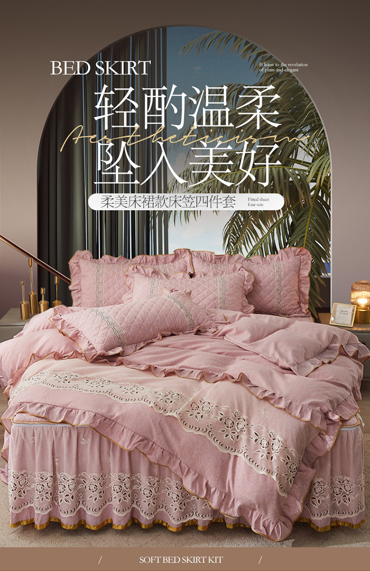 当前位置: 91家纺网 > 商品网购 > 床品套件 > 四件套 > 普通磨毛四件套 > 网红馆 2025新款云影花梦脱卸床笠式床裙四件套 云影花梦-柔粉
