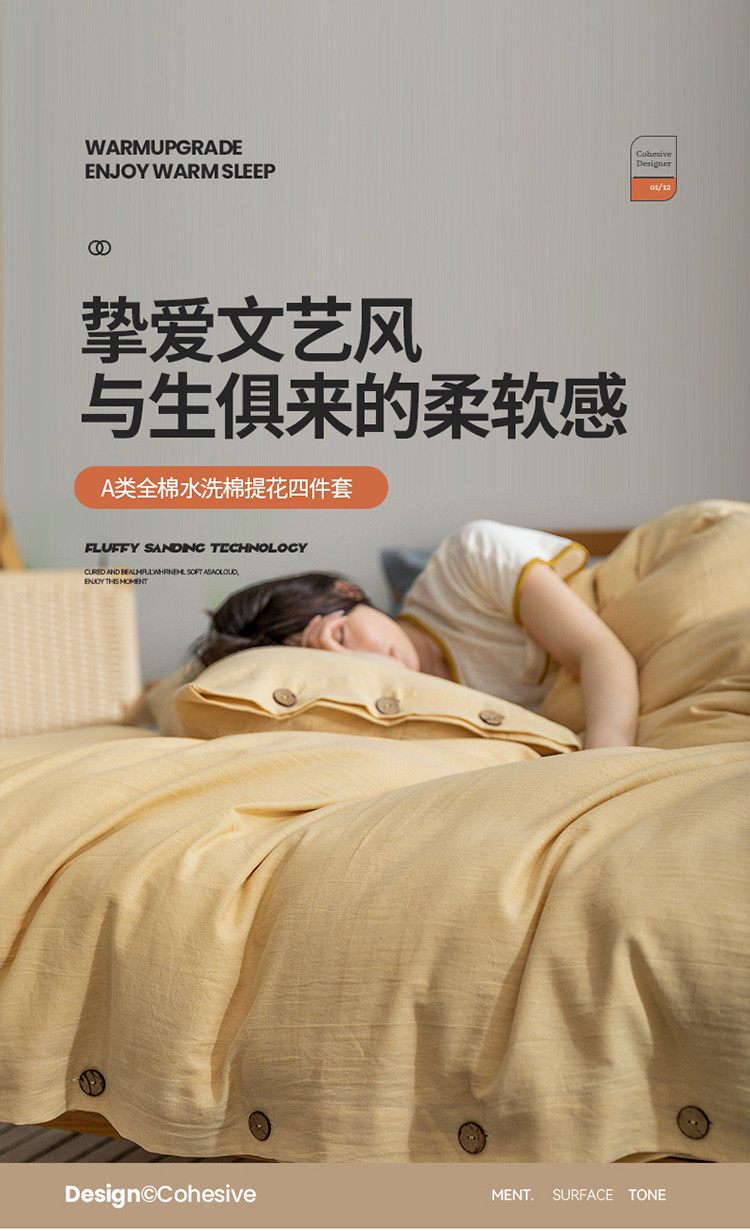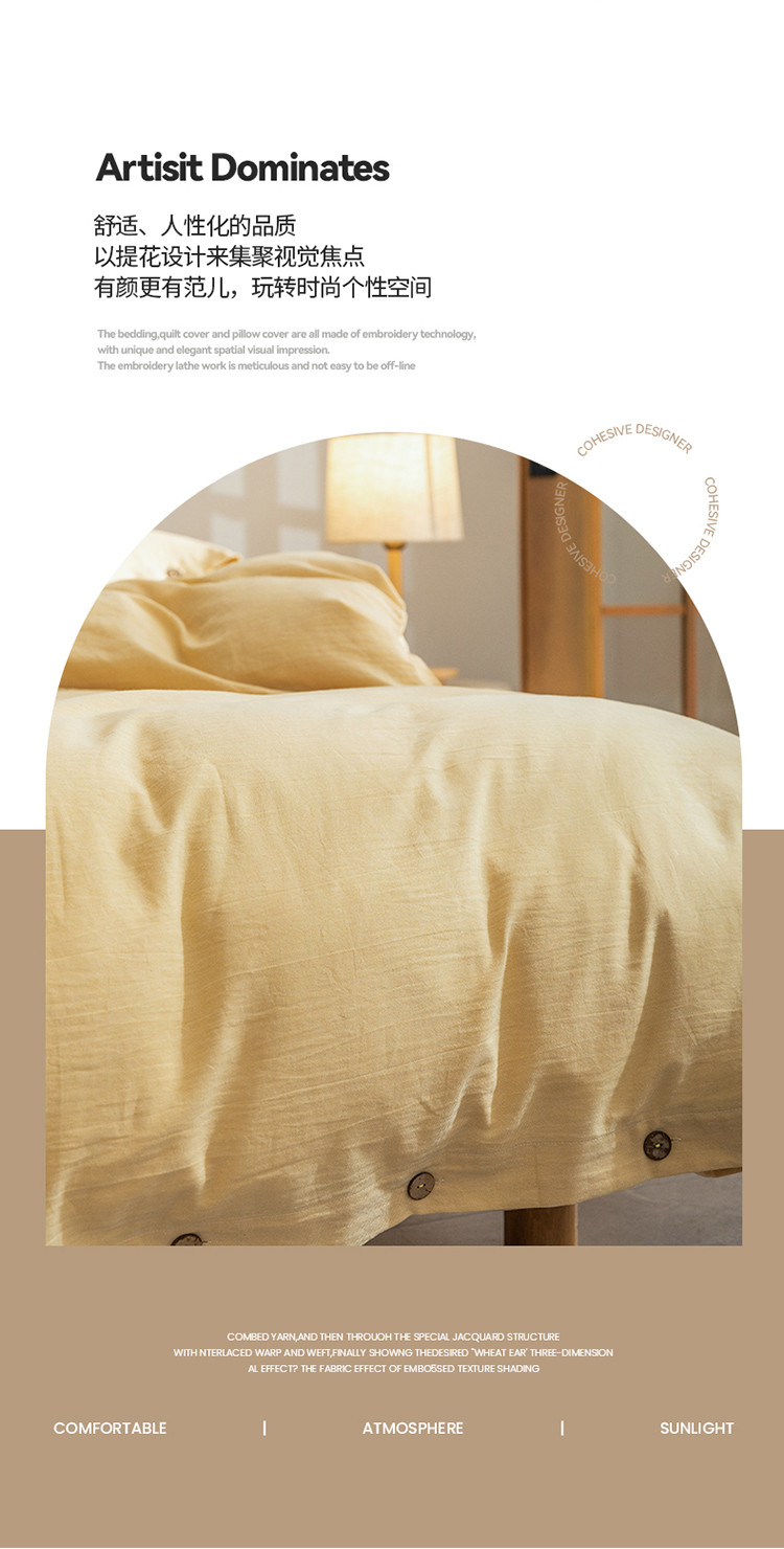 寐眠 2022新款A类全棉水洗棉提花四件套 人字纹-米黄