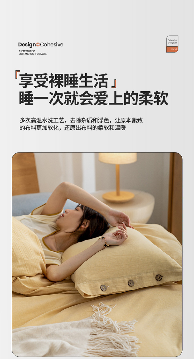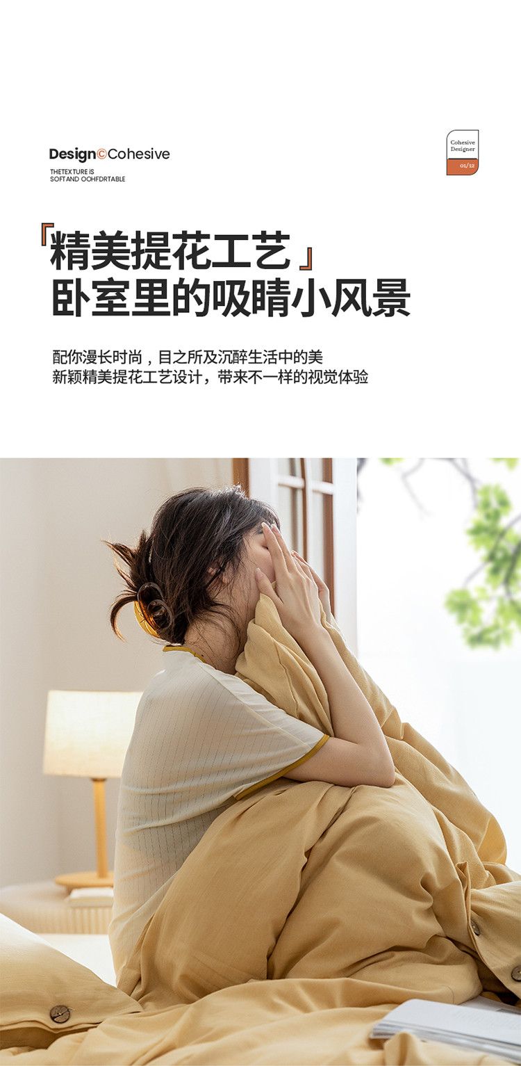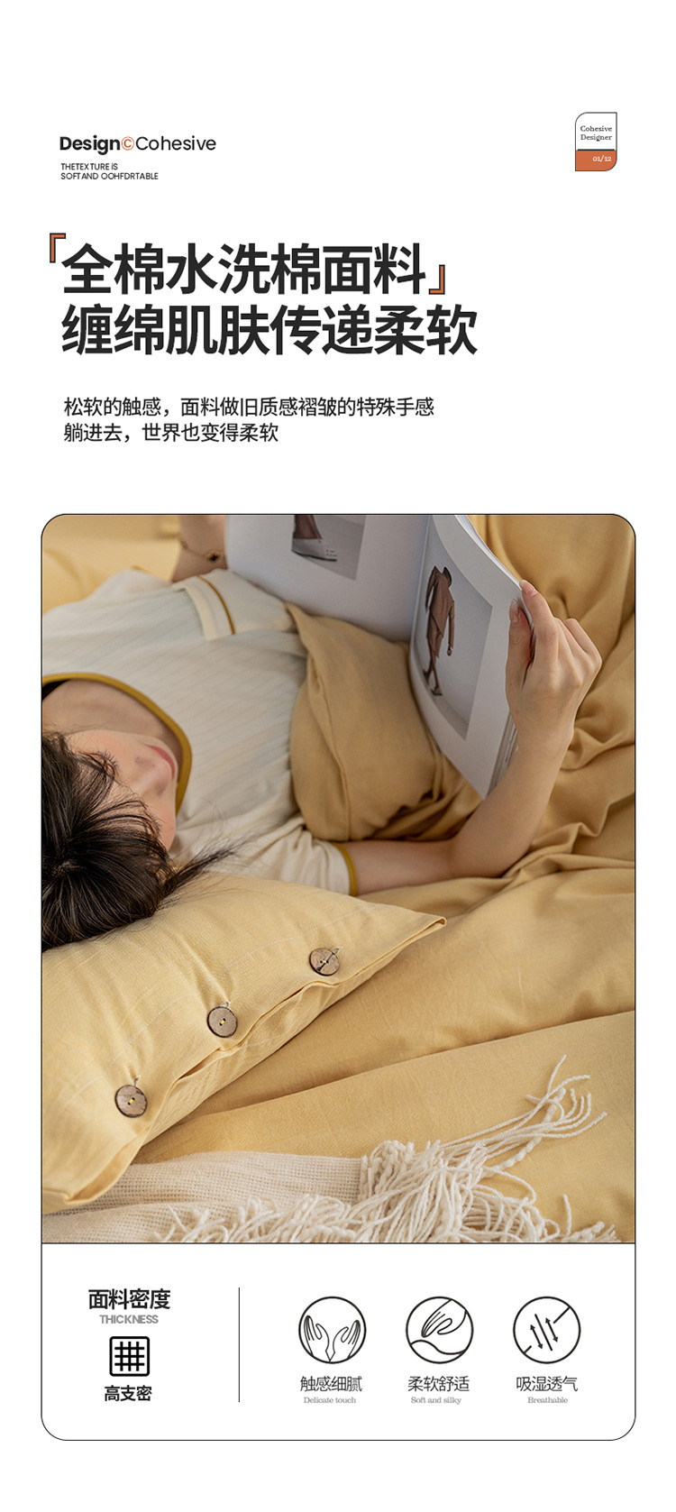 商品名称:寐眠 2022新款A类全棉水洗棉提花四件套 人字纹-米黄