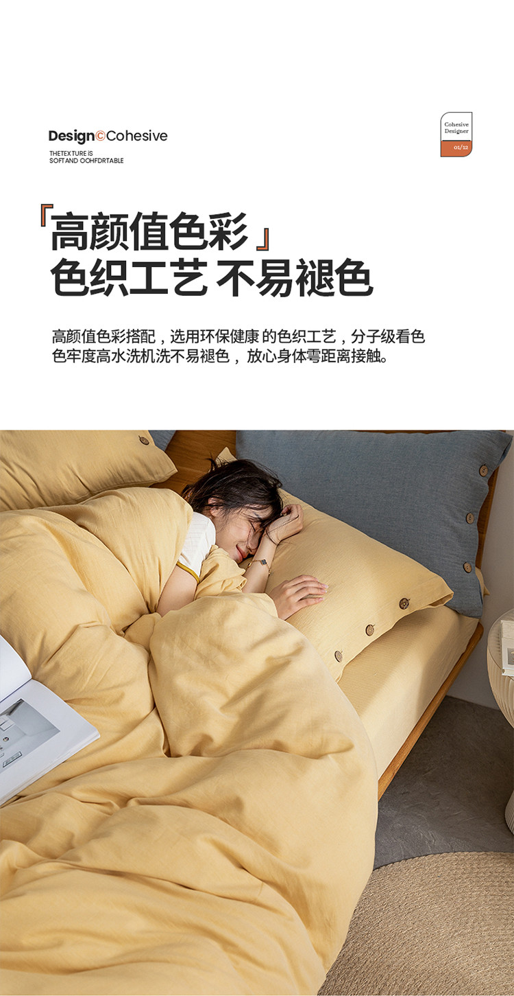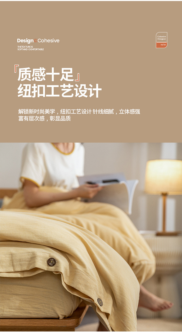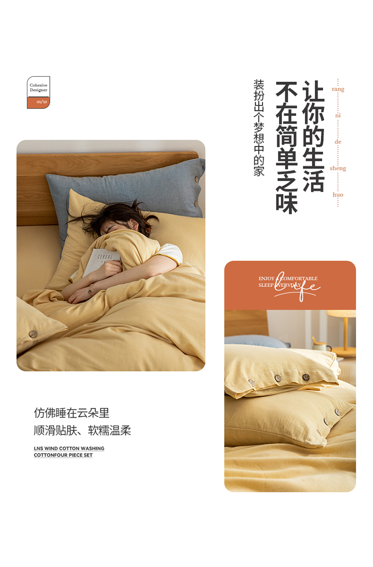 商品名称:寐眠 2022新款A类全棉水洗棉提花四件套 人字纹-米黄