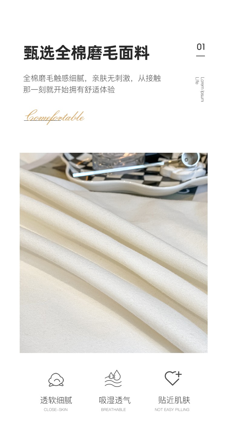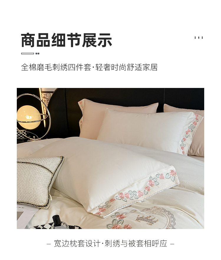 理想家 2022新款全棉磨毛绣花四件套-秘密花园 白