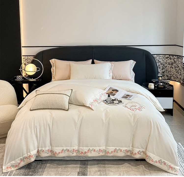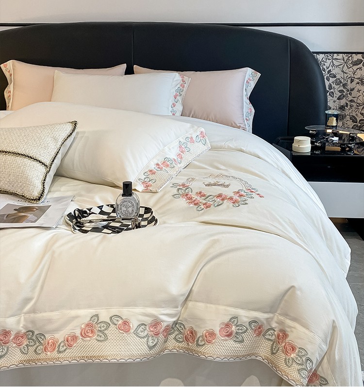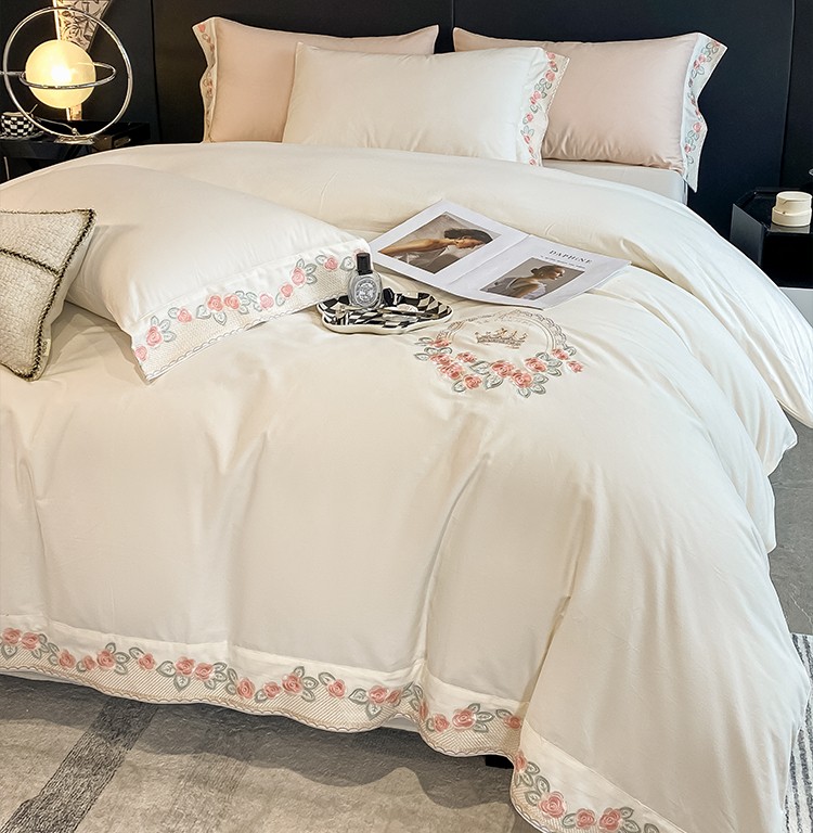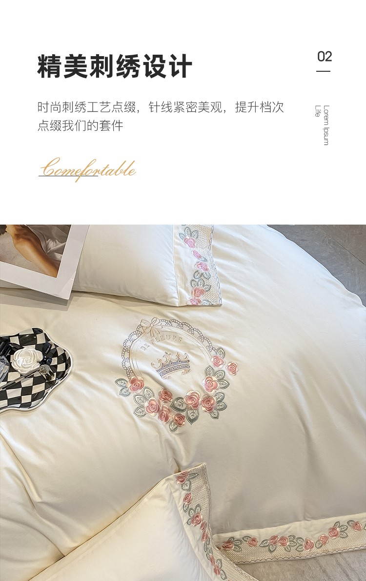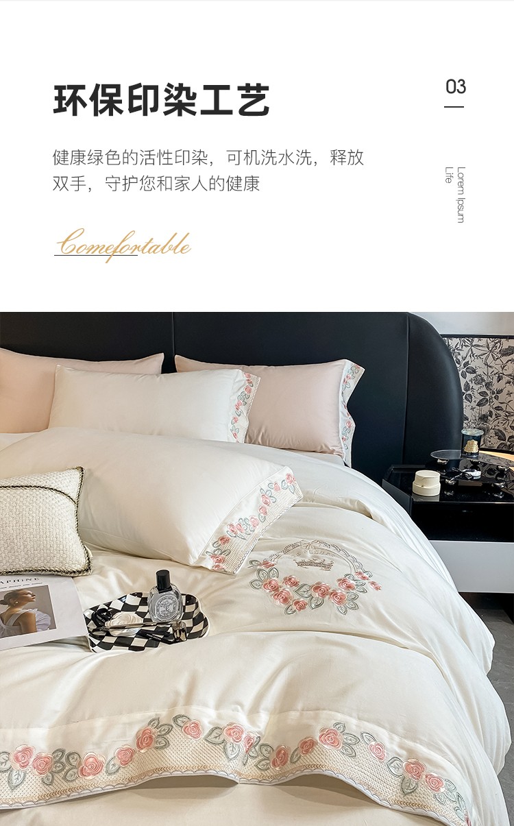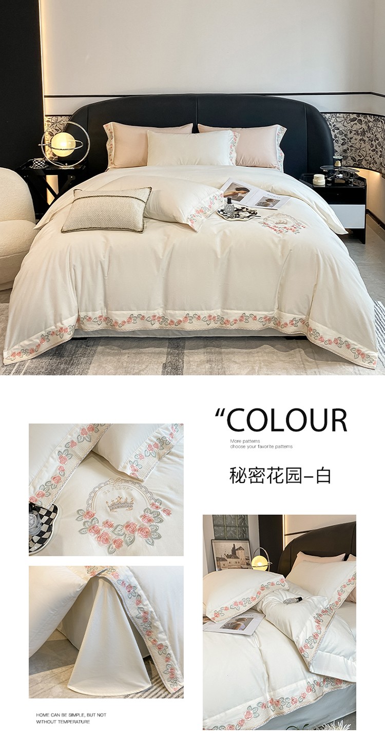 (总)理想家家纺 2025新款纯棉轻奢刺绣四件套-小秘密系列,小秘密-白,小秘密-粉,小秘密-蓝