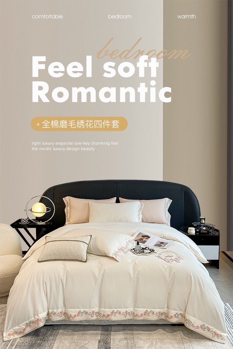 (总)理想家家纺 2025新款纯棉轻奢刺绣四件套-小秘密系列场景二,小秘密 粉,小秘密 黄,小秘密 蓝