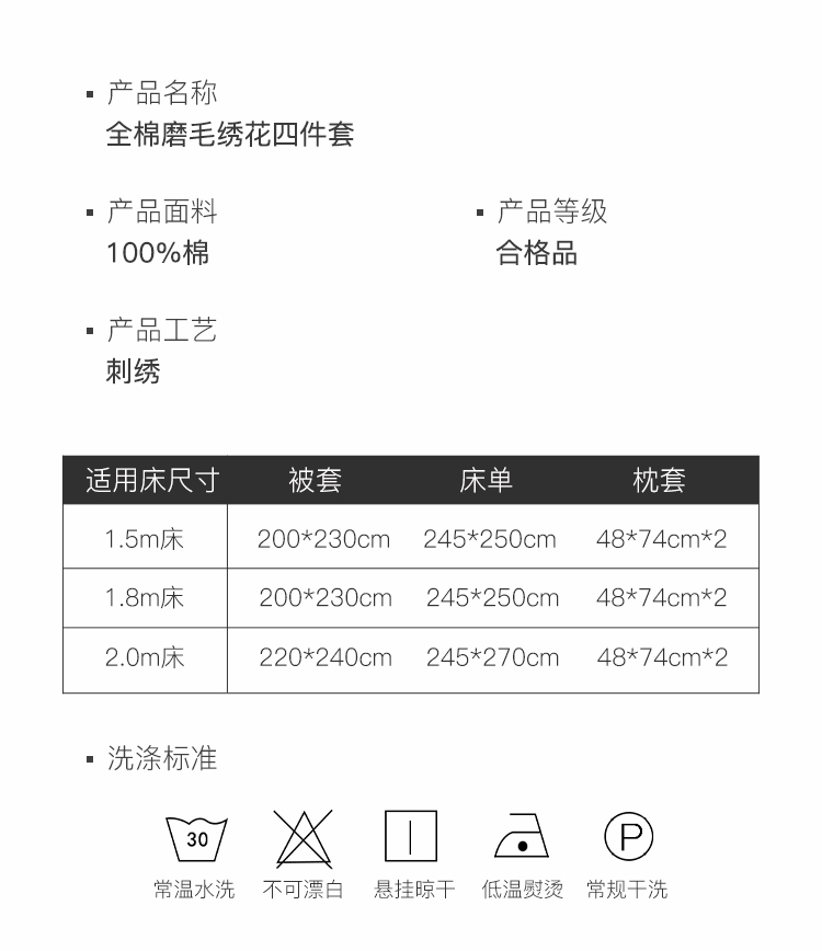 商品名称:理想家 2022新款全棉磨毛绣花四件套-秘密花园 白