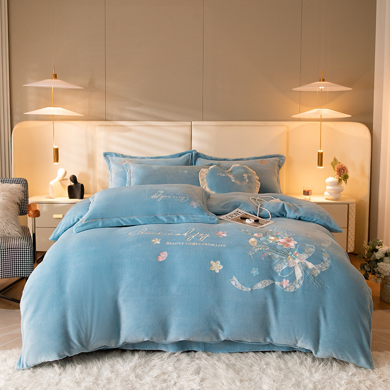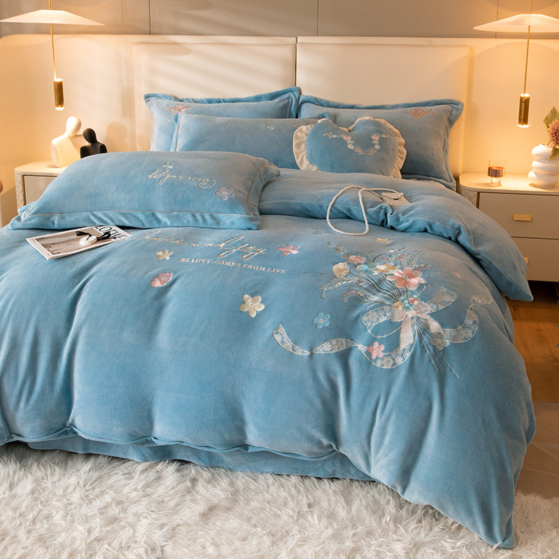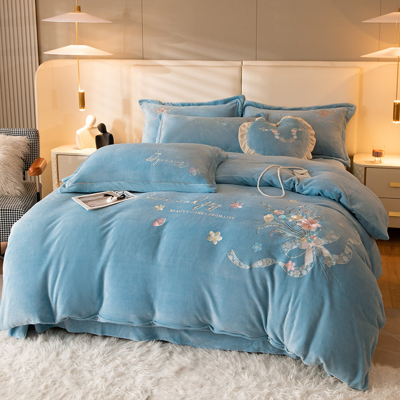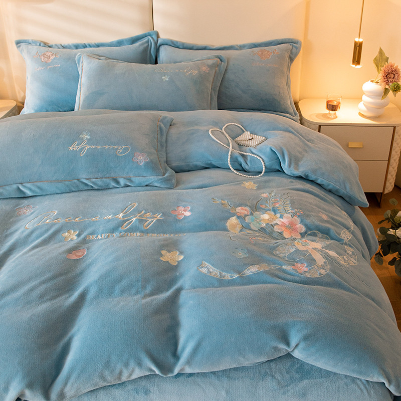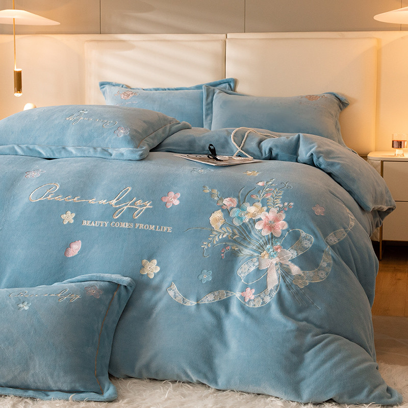 商品名称:宅家居 2023新款蒂娜系列加厚牛奶绒刺绣四件套 蒂娜-蓝色
