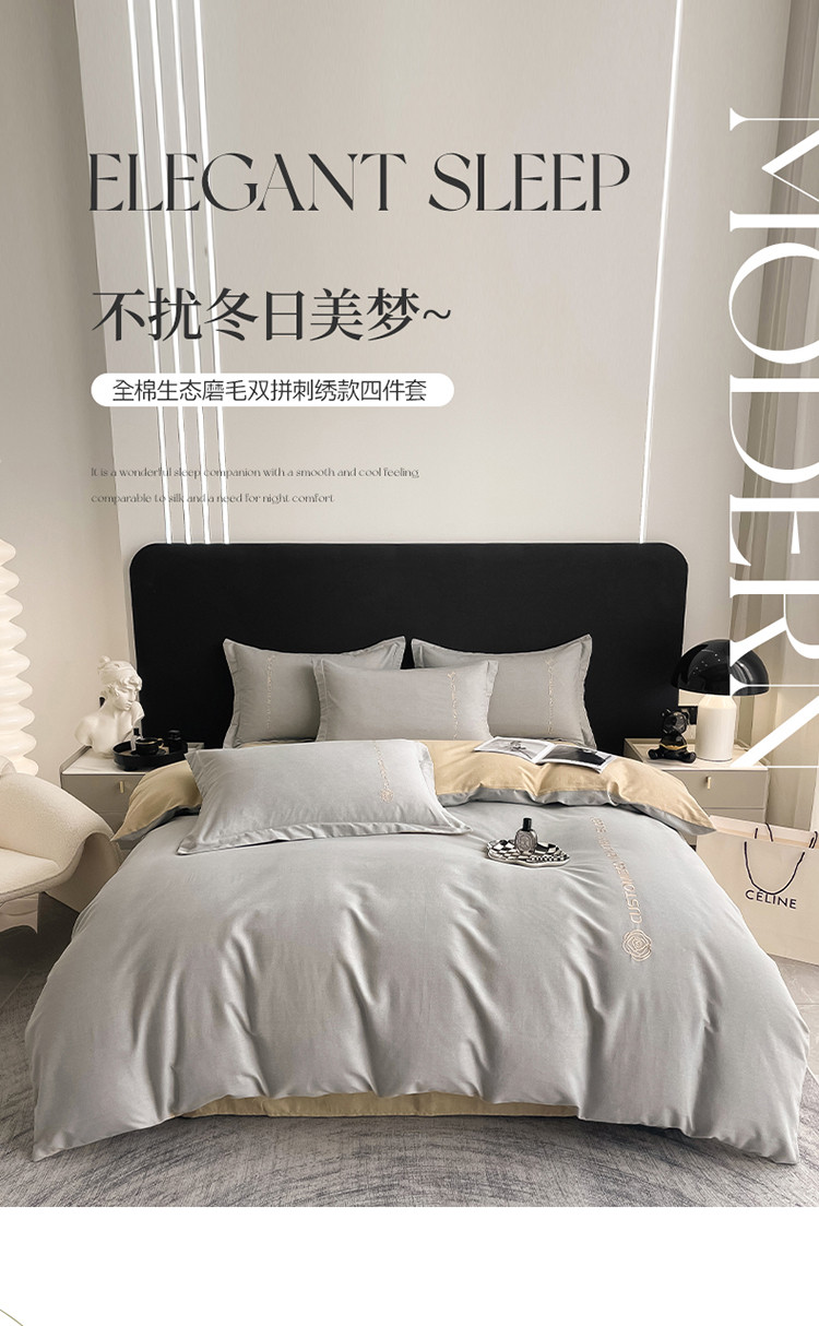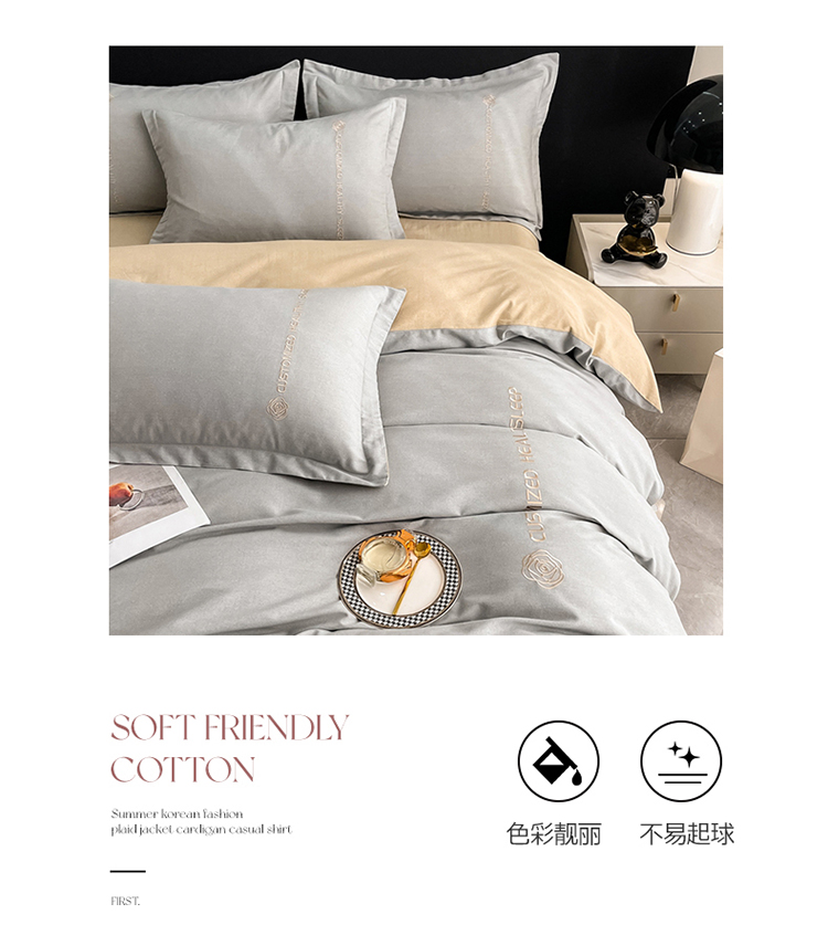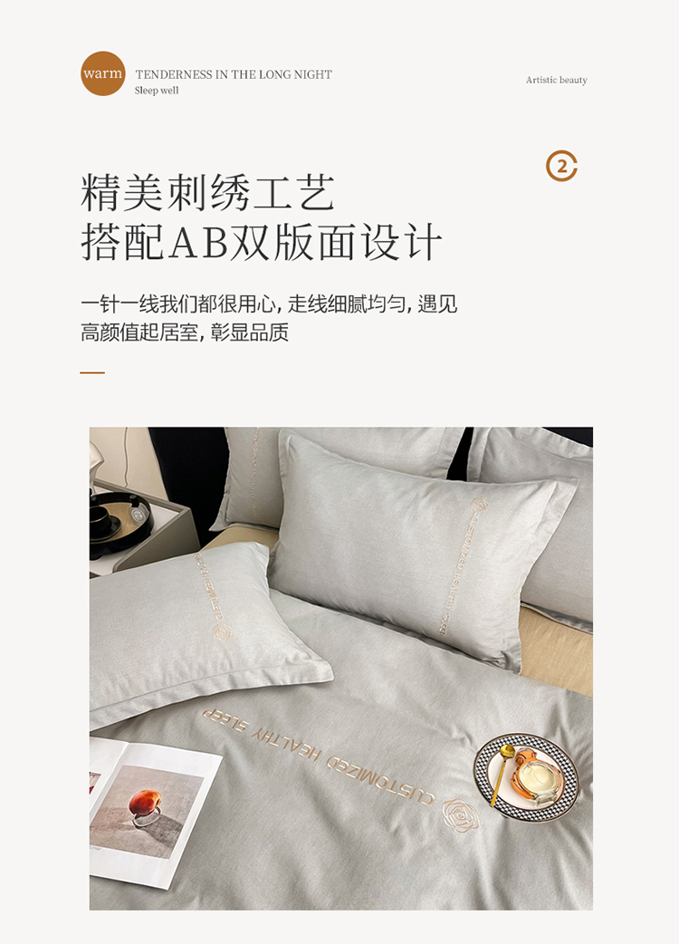 (总)AB家纺 2022新款全棉生态磨毛刺绣四件套,焦糖-米卡,橘-绅士灰,米卡-浅灰,浅灰-米卡,绅士灰-浅灰,雪青-绅士灰,樱花粉-绅士灰,月光蓝-绅士灰