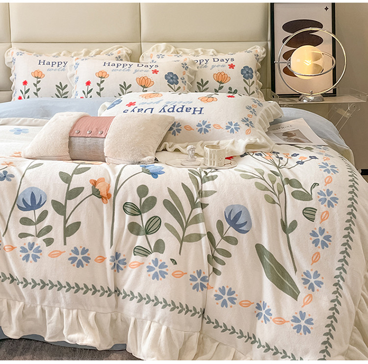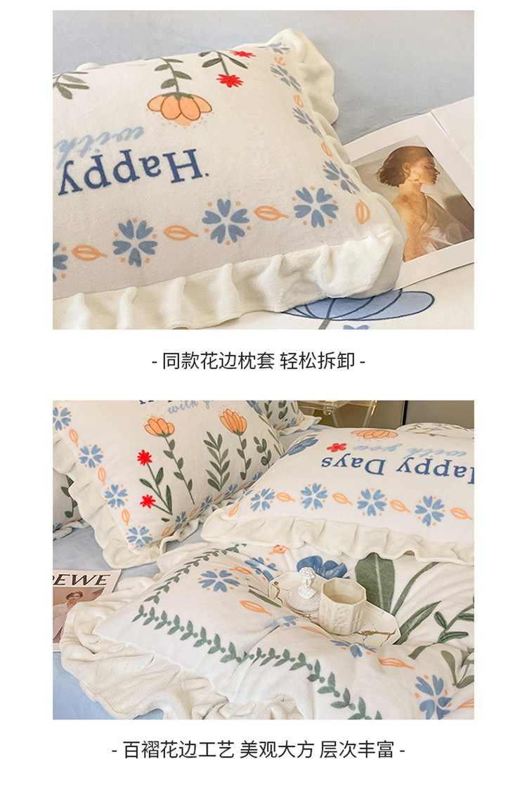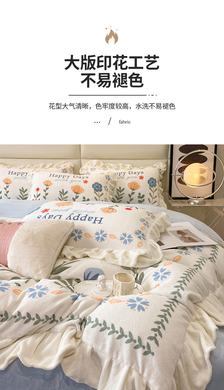川悦生活 2022新款大阪花边轻奢牛奶绒四件套 生活幸福