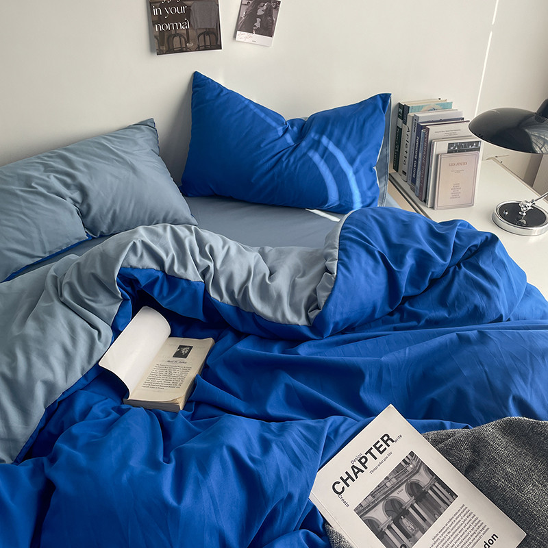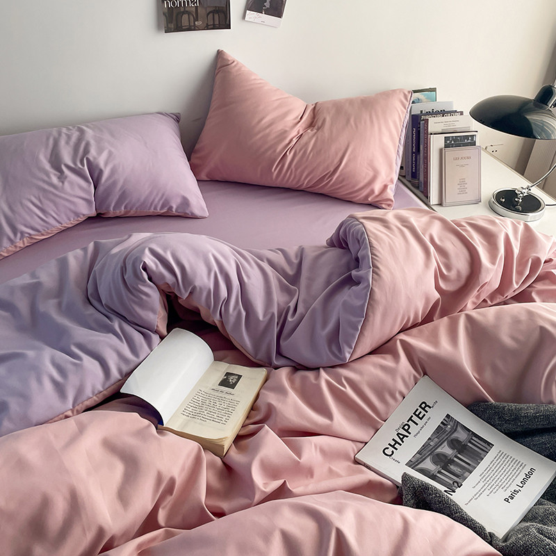 (总)贝拉梦家纺 2025新款纯色磨毛双拼亲肤棉四件套,暗黑骑士,半熟青柠,蓝色星河,奶油香草,乌梅子酱