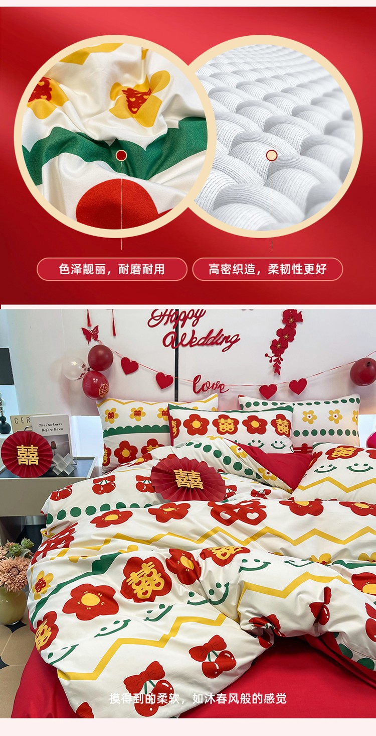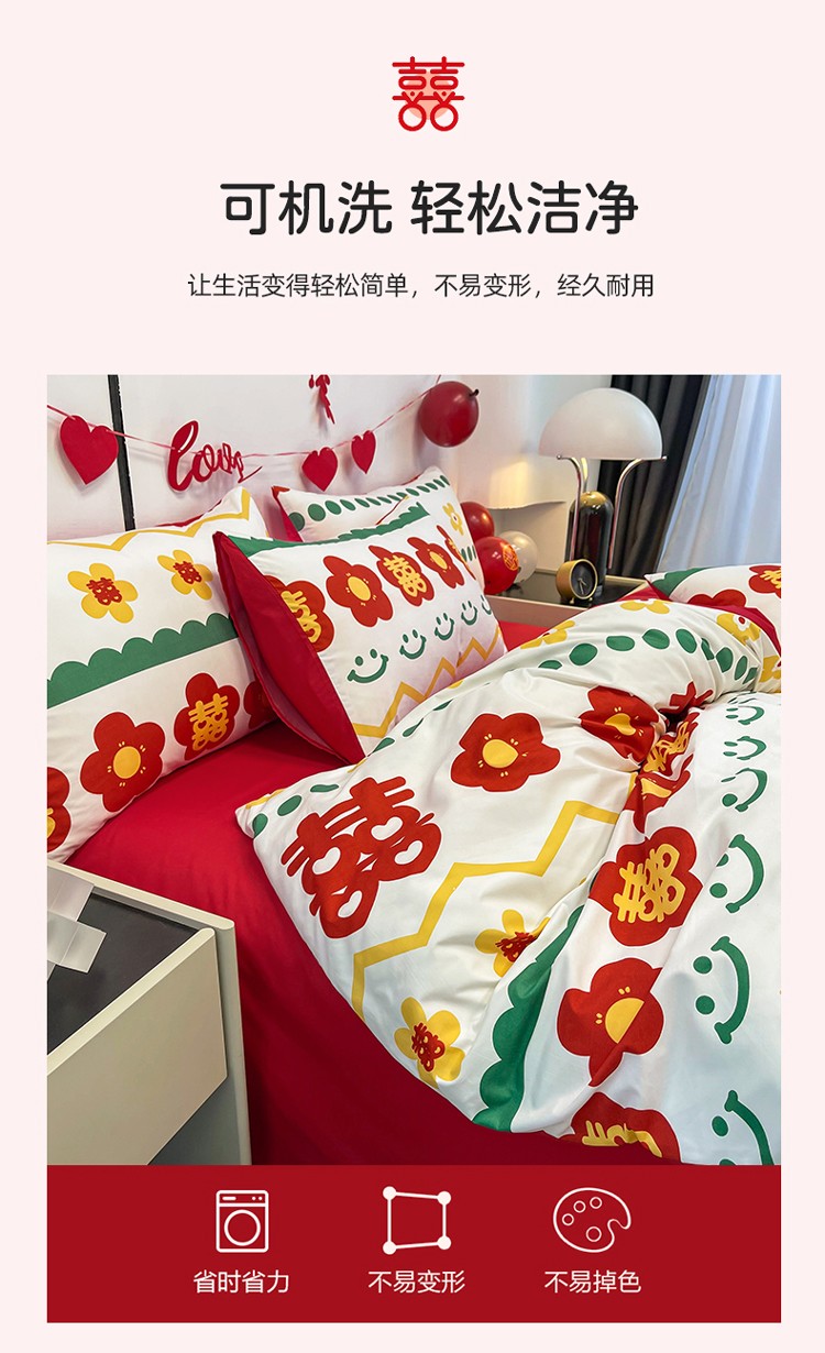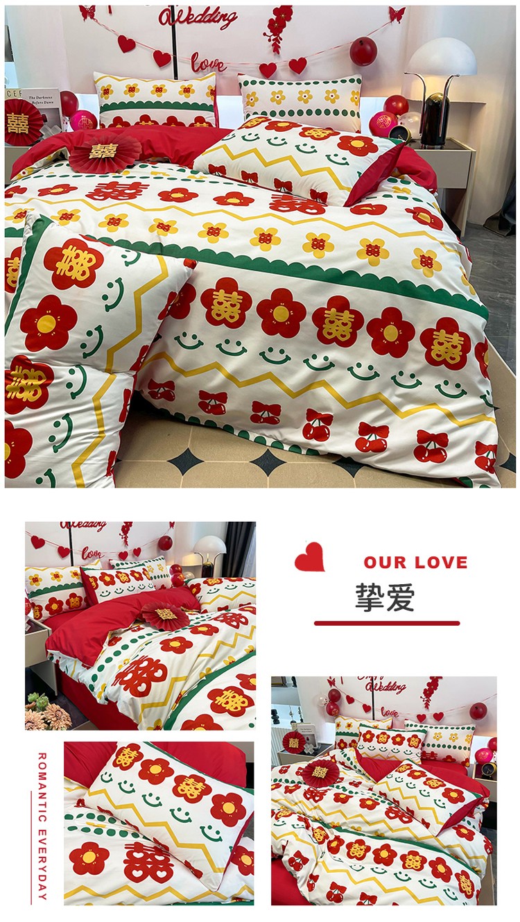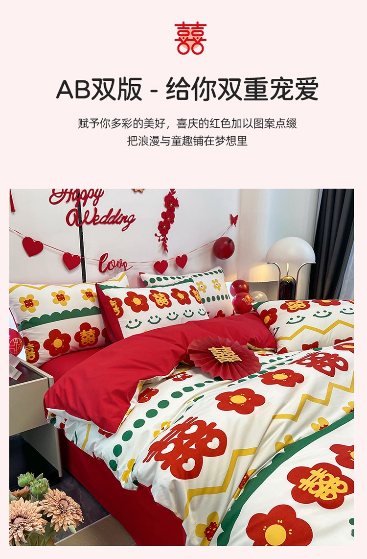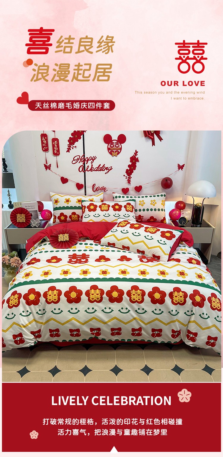 宏源 2022年新款大红时尚磨毛婚庆四件套 挚爱