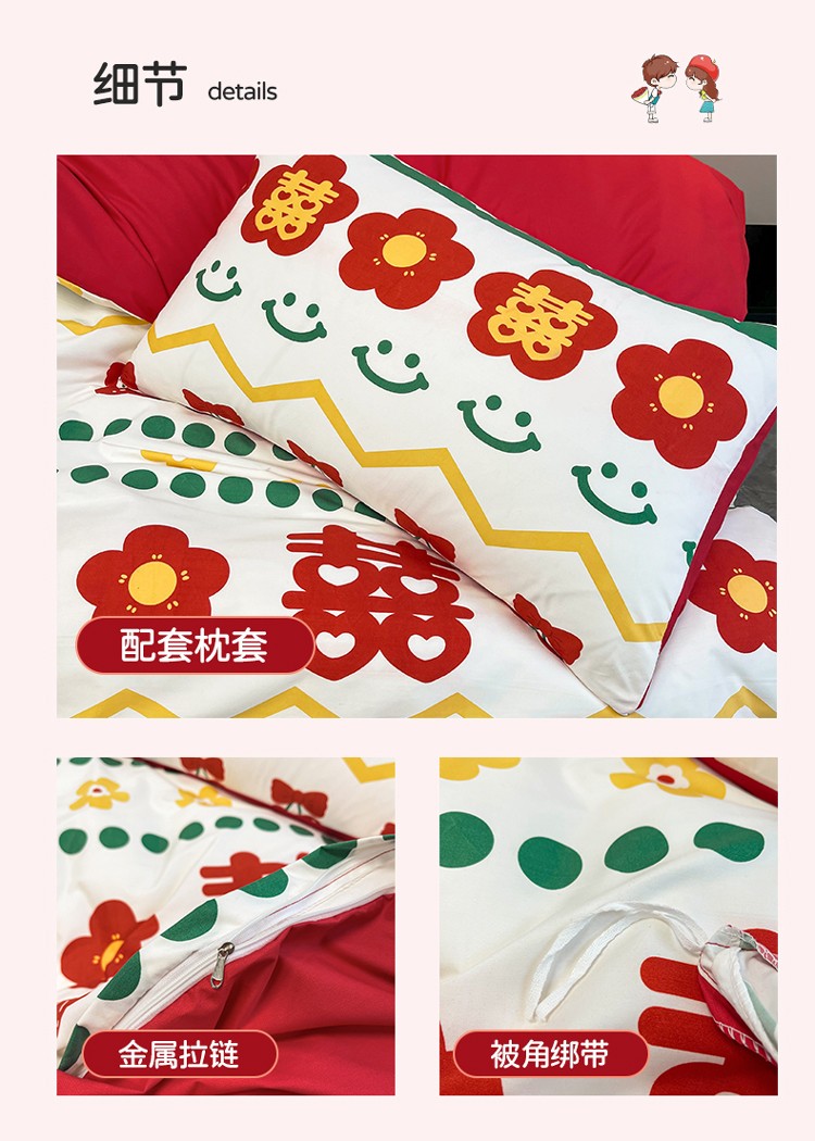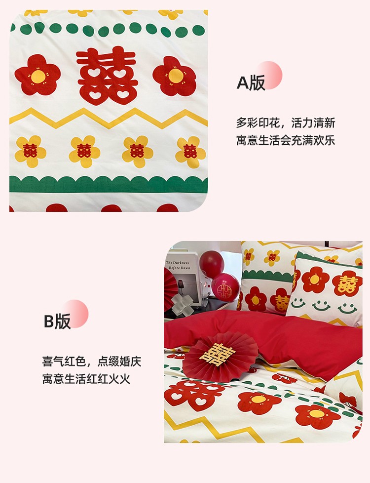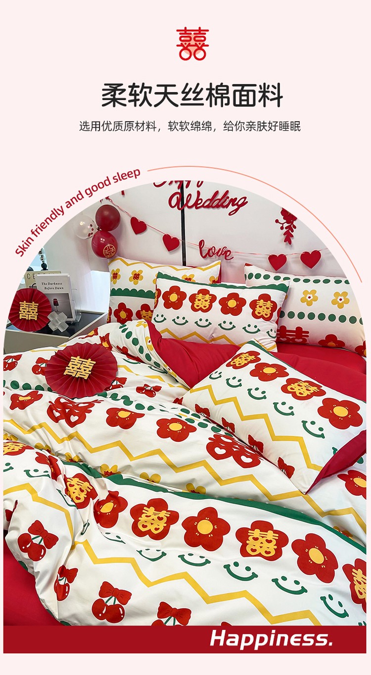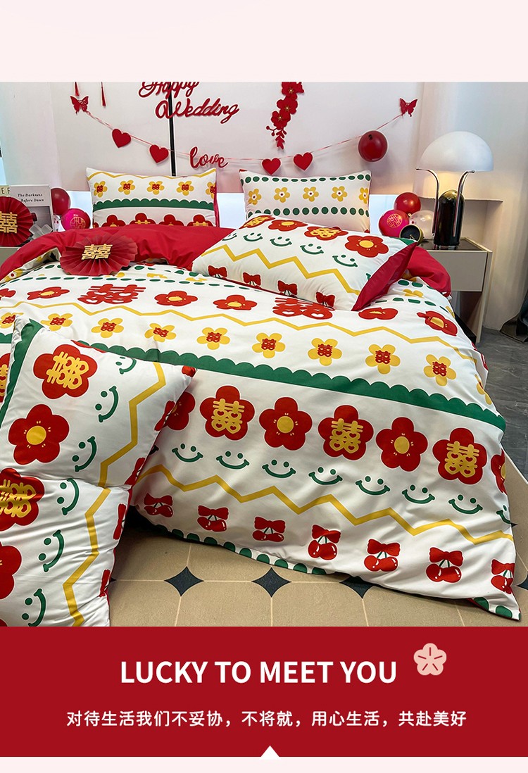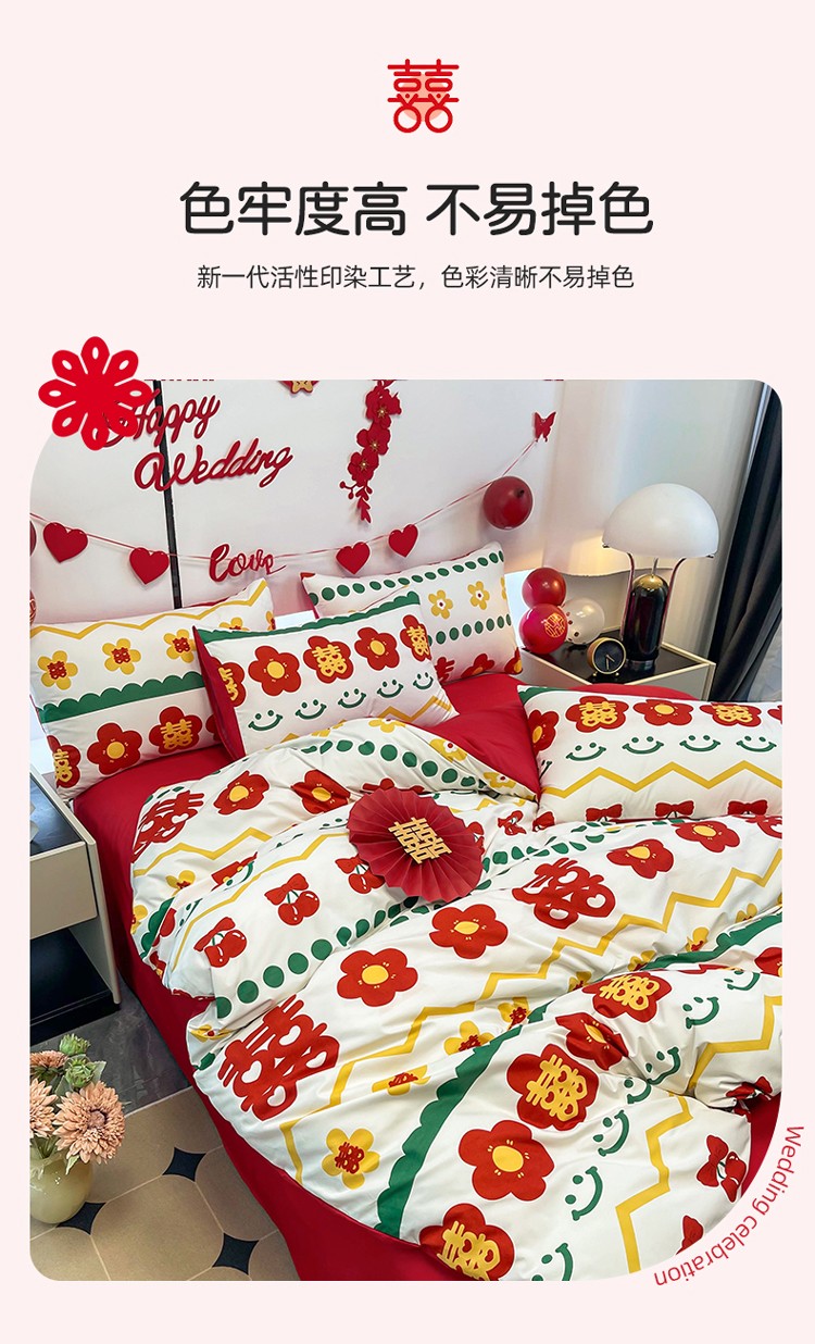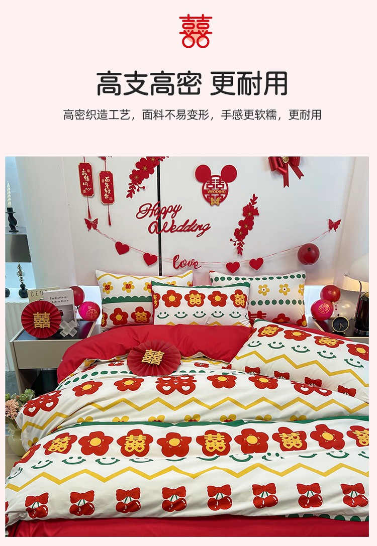 宏源 2022年新款大红时尚磨毛婚庆四件套 挚爱