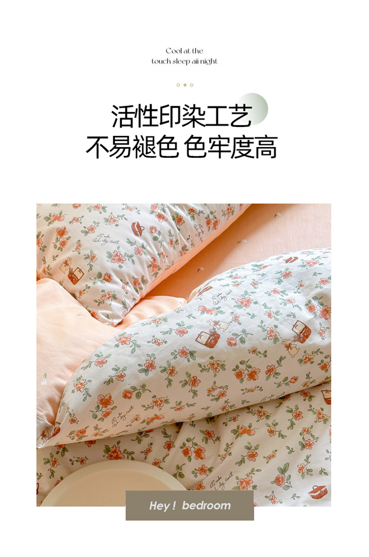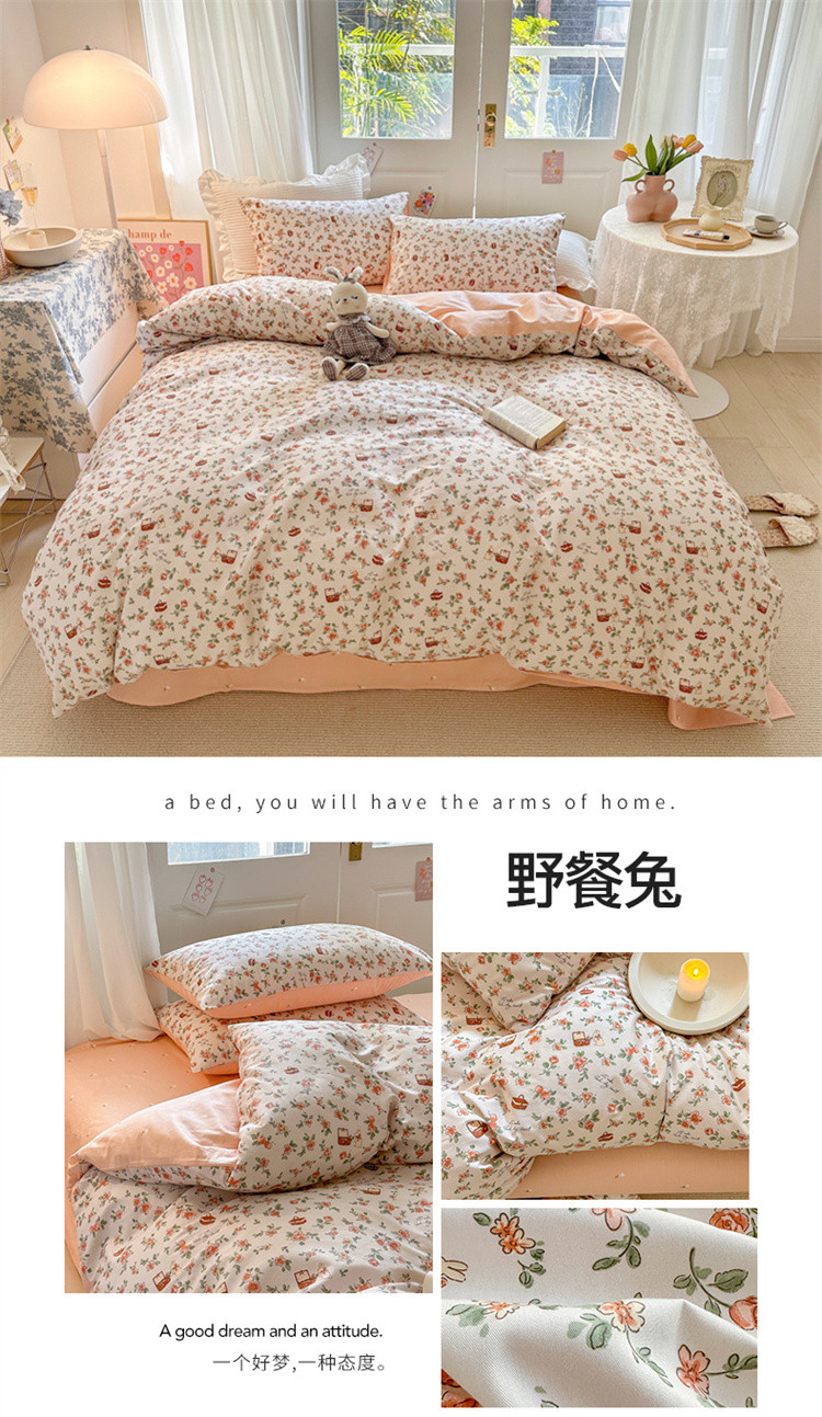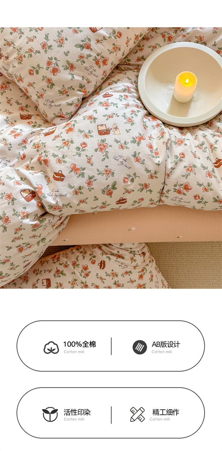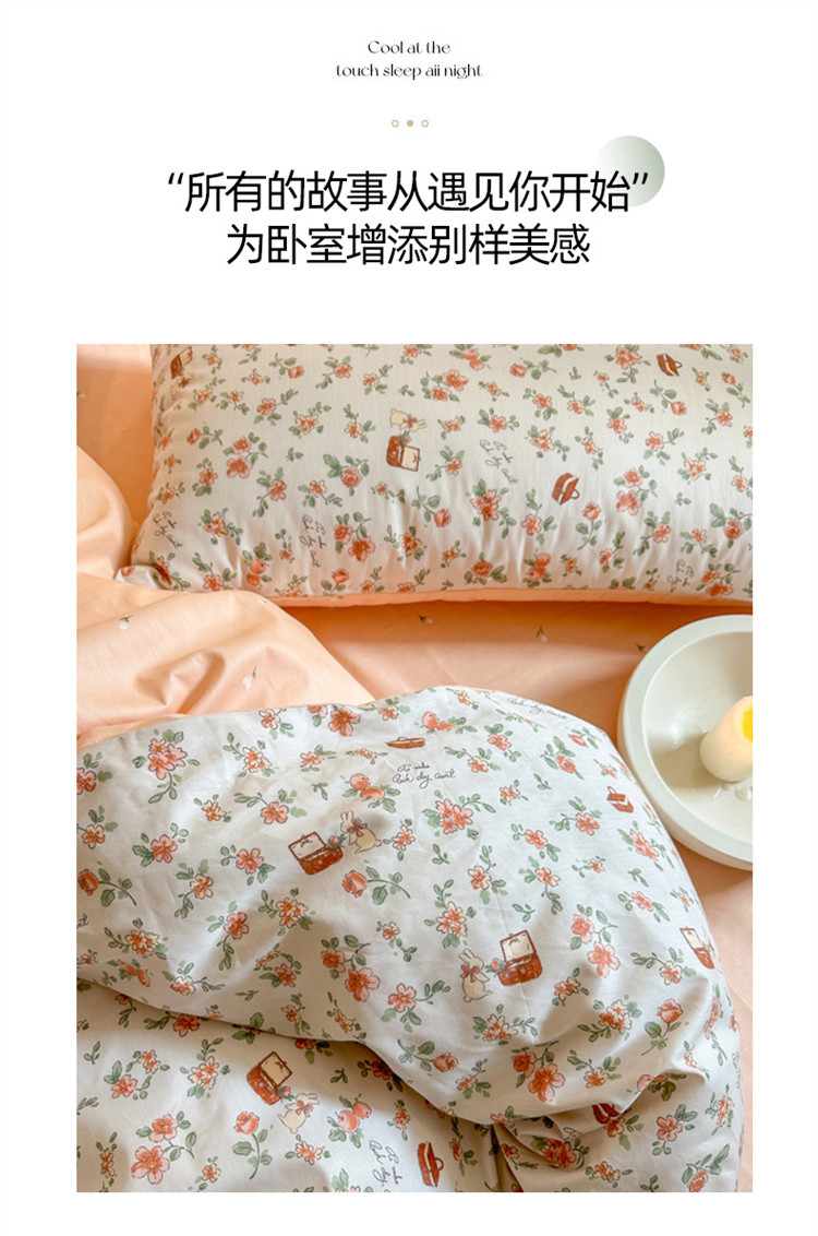 优彩 2023新款全棉13372花卉系列四件套-全棉小碎花花型 野餐兔