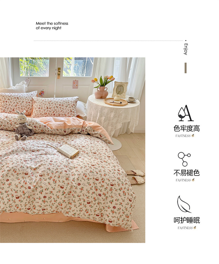 (总)优彩 2025新款全棉40支水洗棉水果刺绣系列四件套,蜜桃,葡萄