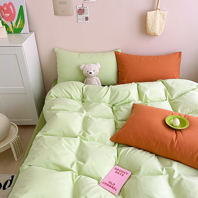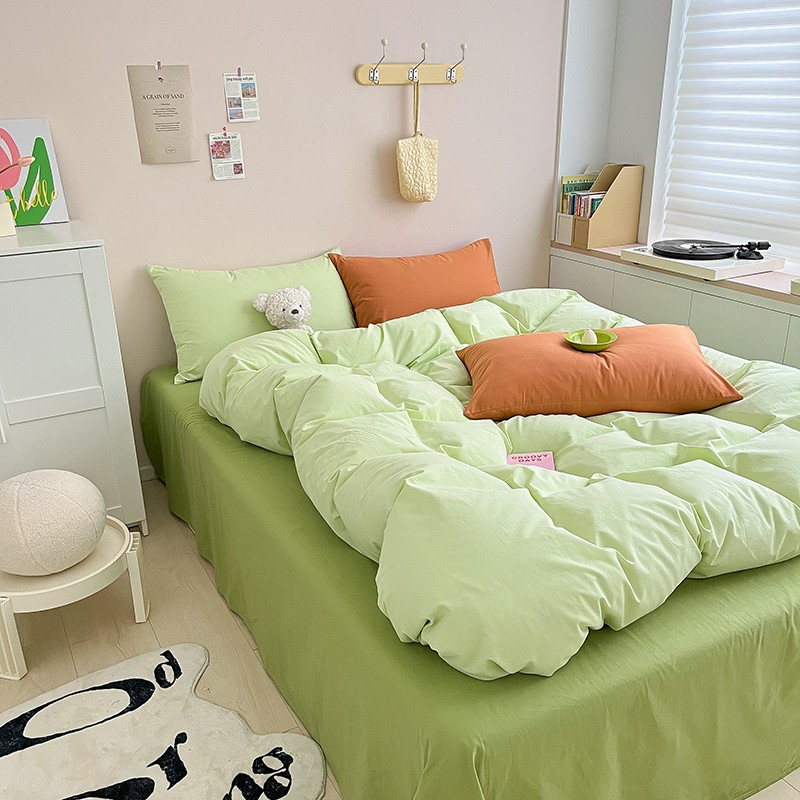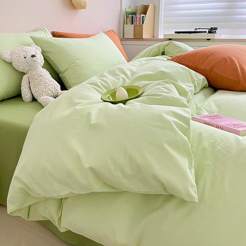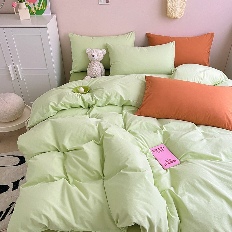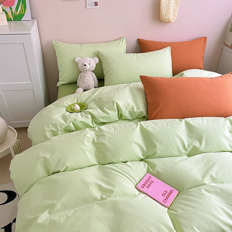 当前位置: 91家纺网 > 商品网购 > 床品套件 > 四件套 > 全棉普通四件套 > 寐居 2023新款双拼全棉水洗棉纯色四件套 ins风-湖绿色