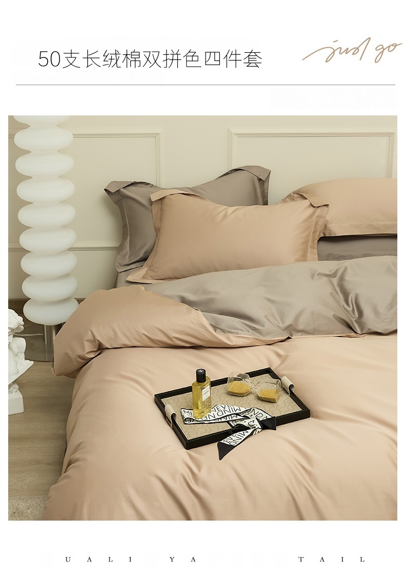 当前位置: 91家纺网 > 商品网购 > 床品套件 > 四件套 > 长绒棉四件套 > 新款100S长绒棉双拼四件套 雾金-灰