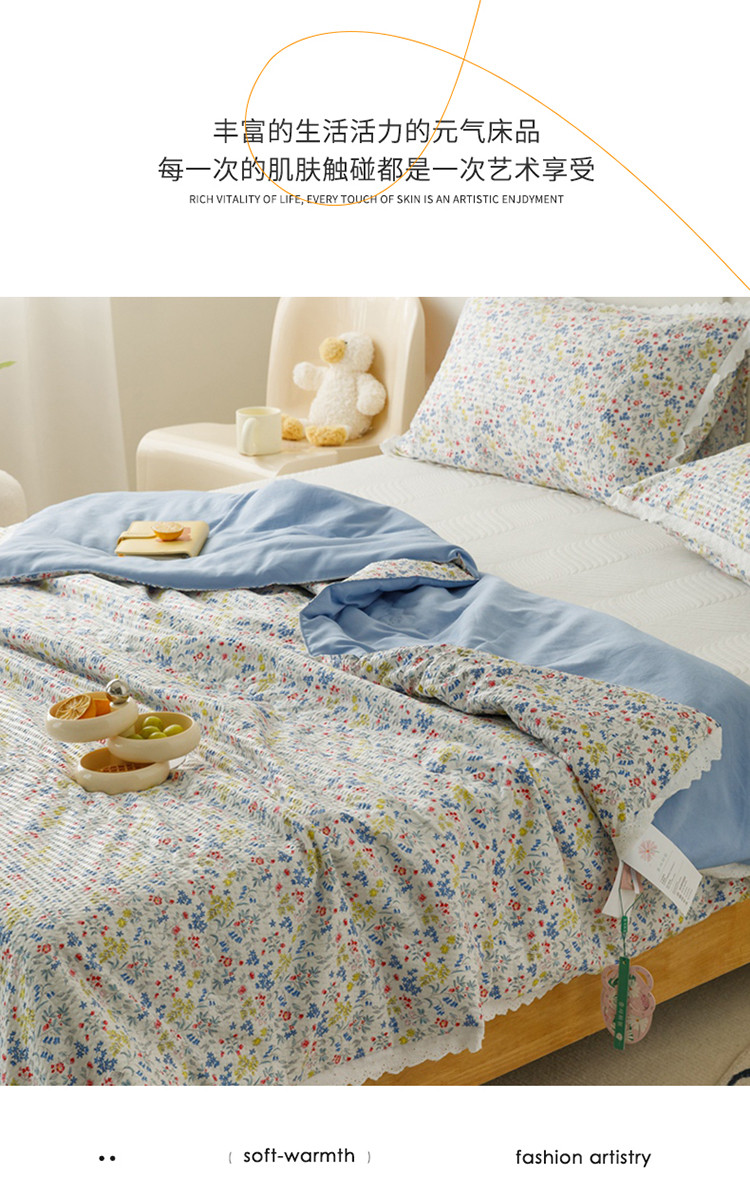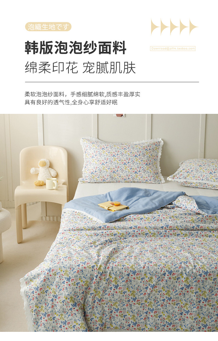 (总)有货 2023新款韩式棉麻泡泡纱印花四季被,艾薇,浪漫,青柠,森林兔,森屿,树莓,桃夭,小可爱,伊甸,樱粟