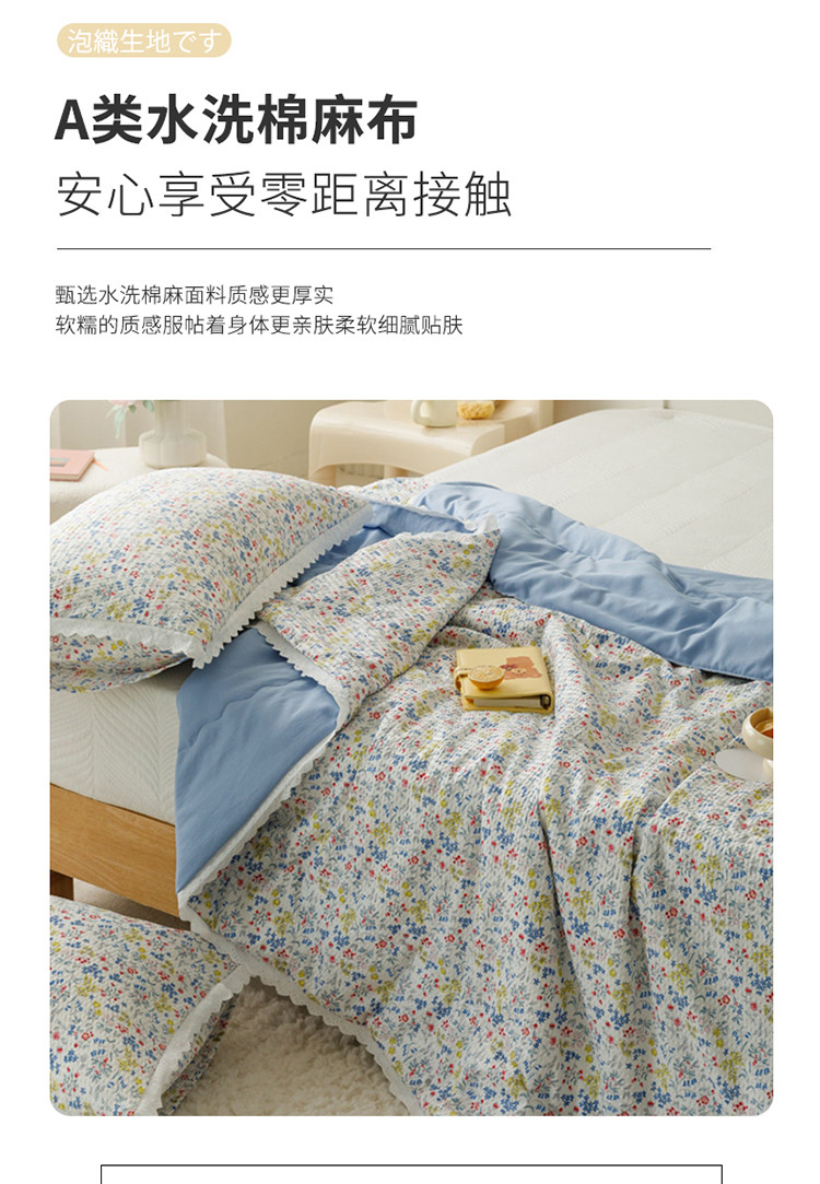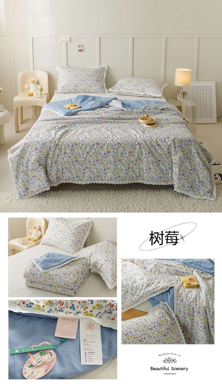 商品名称:有货 2023新款韩式棉麻泡泡纱印花四季被 树莓
