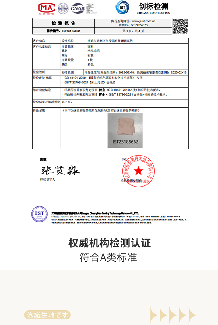 4、通州区市场监管局川姜分局友情提醒:近期针对抗静电,无静电,抗菌防螨,及有关舒适度,百分比的举报高发。为不影响商品正常销售,请各商家高度重视,自检自查及时整改,谢谢配合!