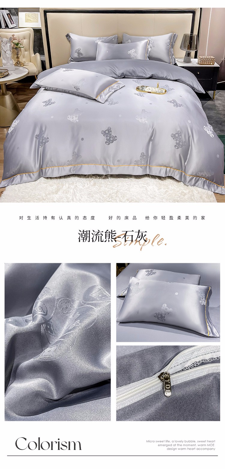 (总)经年 2023年潮流熊60S贡缎提花水洗真丝天丝四件套