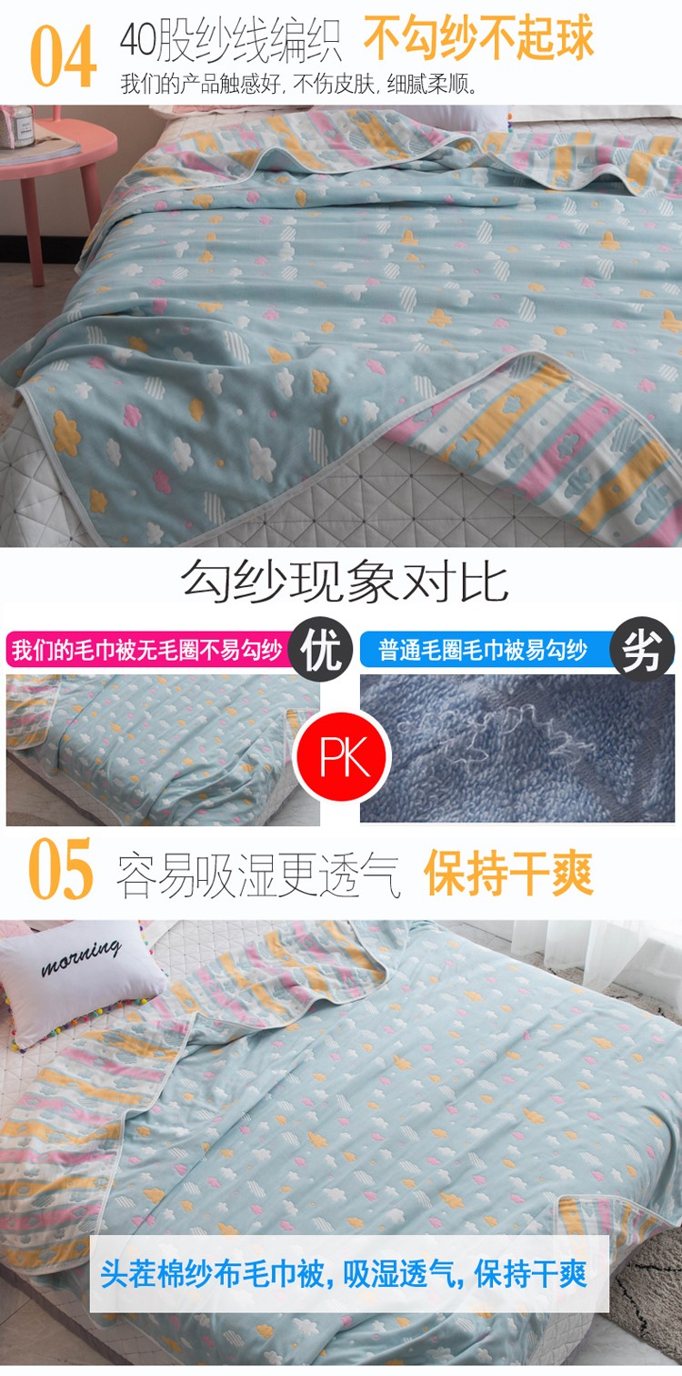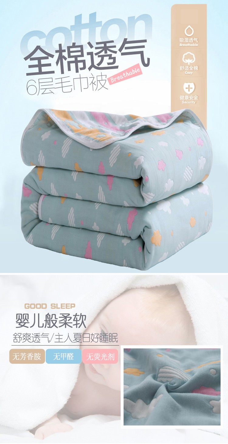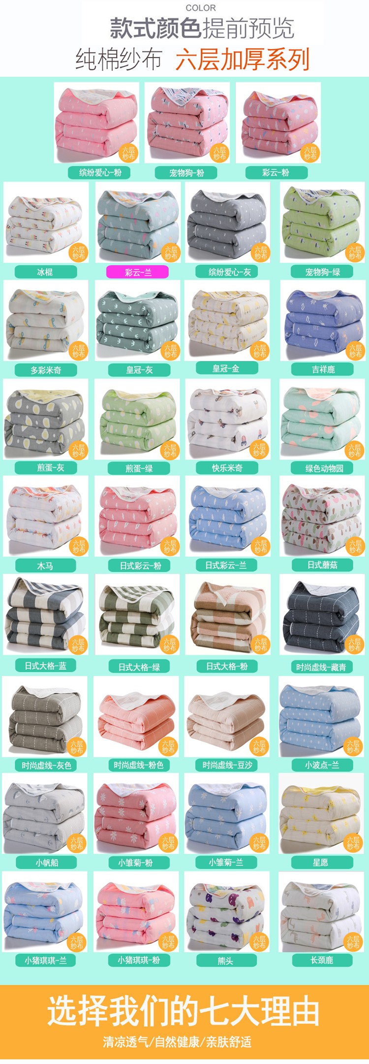 商品名称:朴尔 2023新款全尺寸经典六层纱布全棉毛巾被系列 彩云-兰