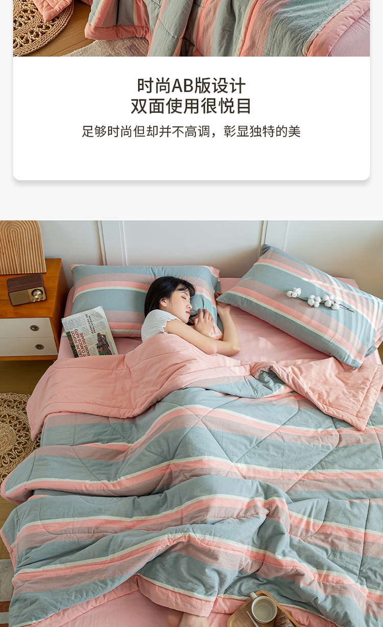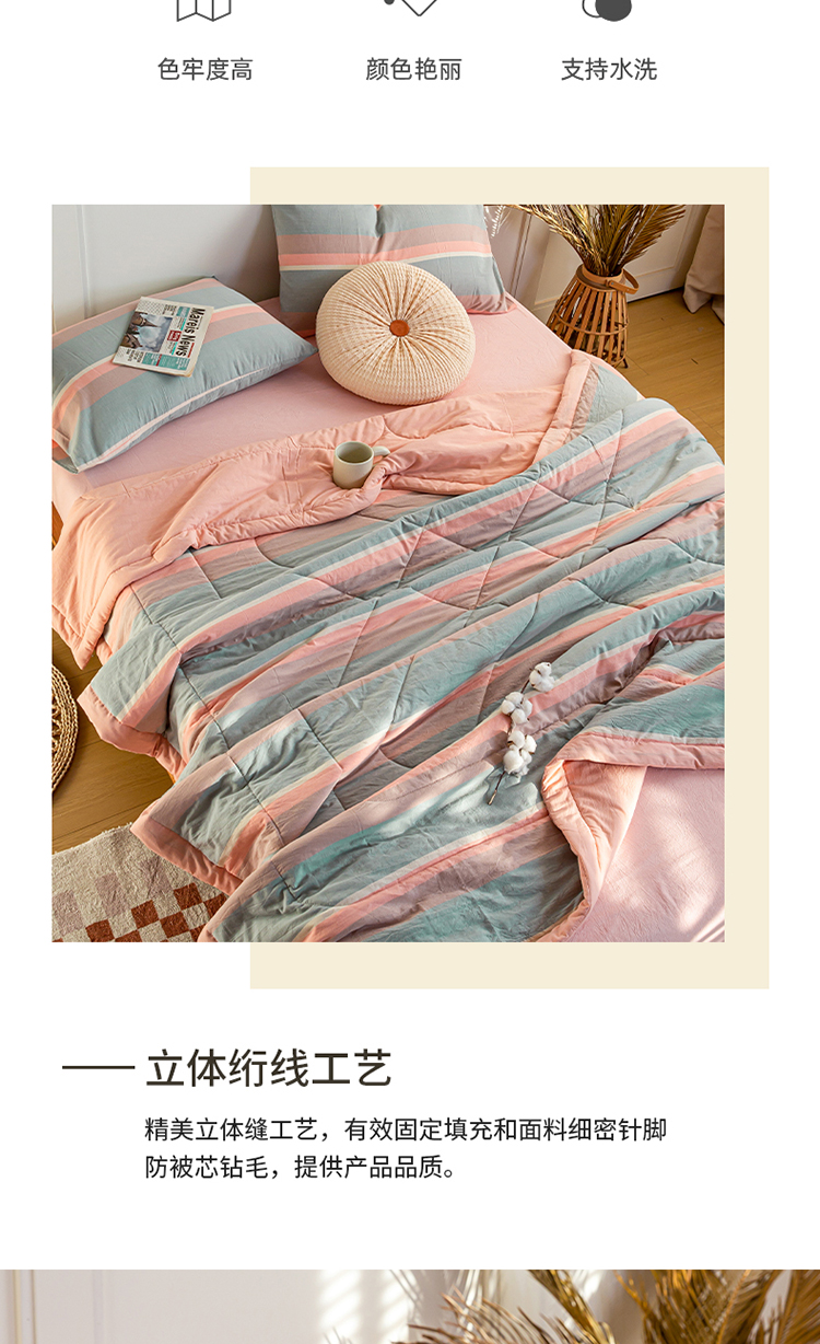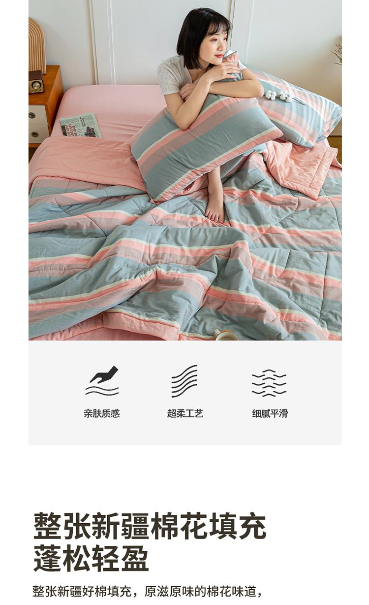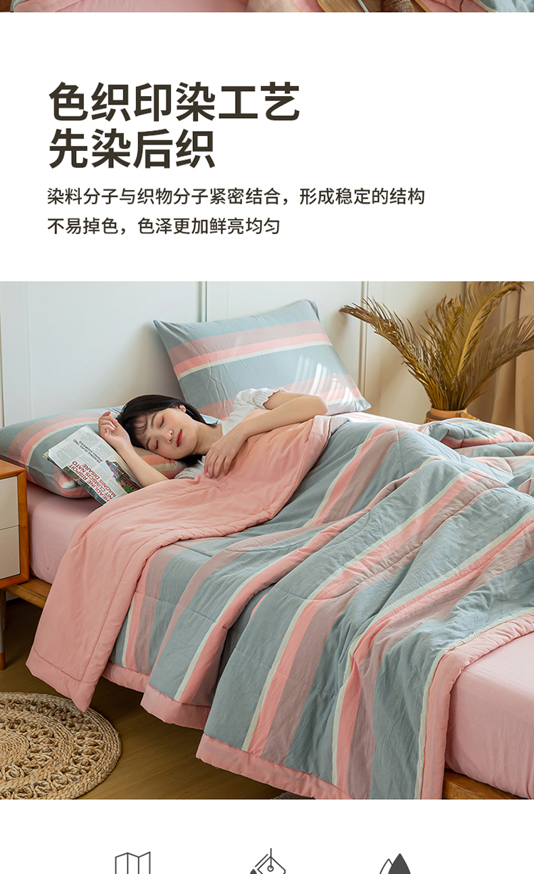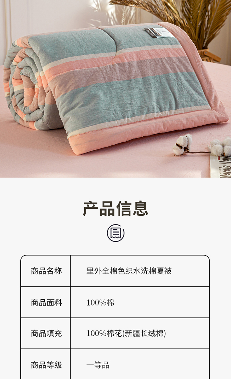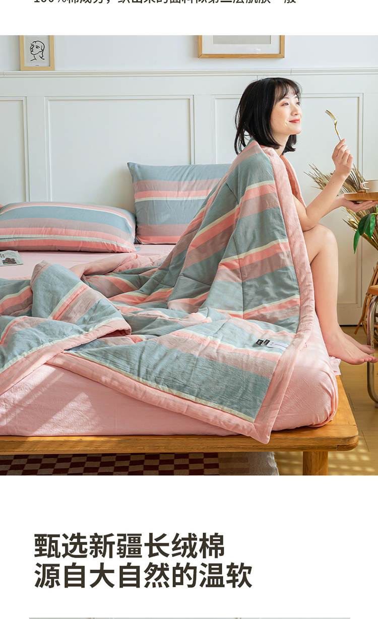 • 91家纺网 家纺一手货源 找家纺 鸣升新疆长绒棉全棉花色织水洗棉夏被四件套 嫩绿卡其条