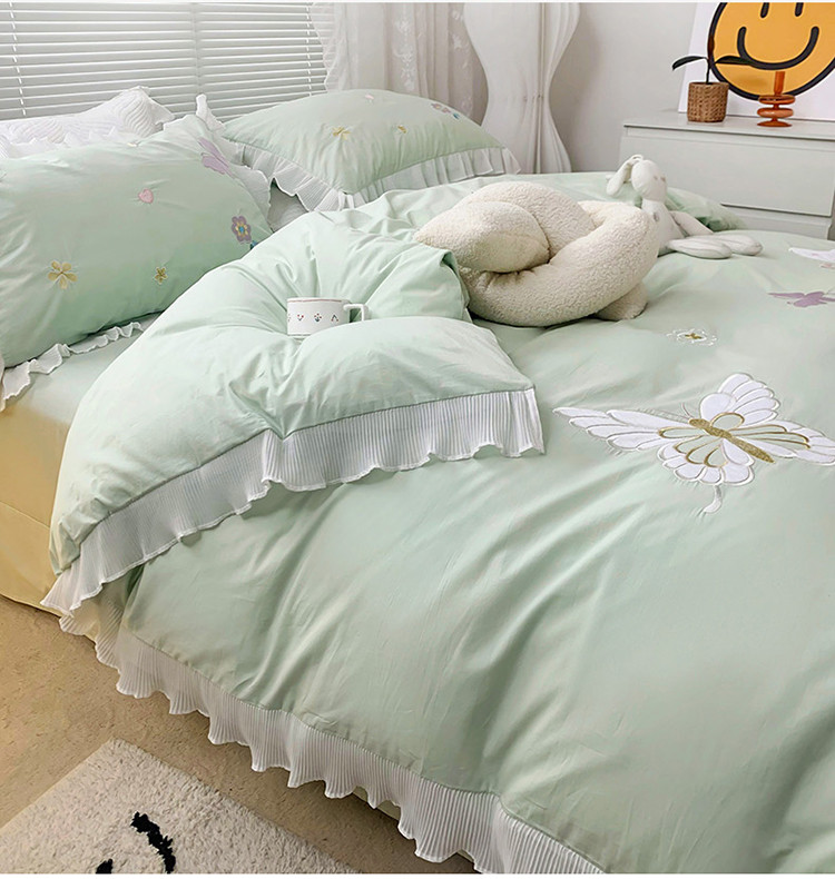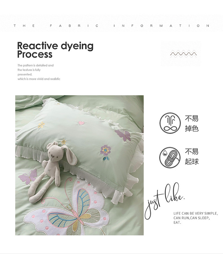 梵克保罗 新款母婴级全棉水洗棉绣花四件套-蝴蝶夫人 蝴蝶夫人-绿