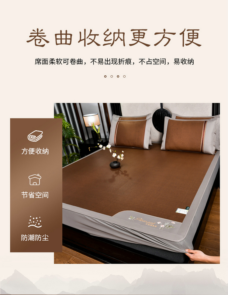 商品名称:小牛席业2023新款艾草清香冰藤席系列(床笠款) 黑咖