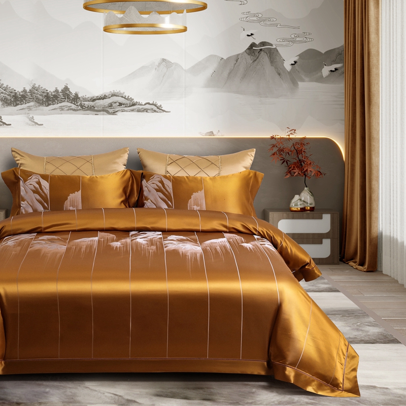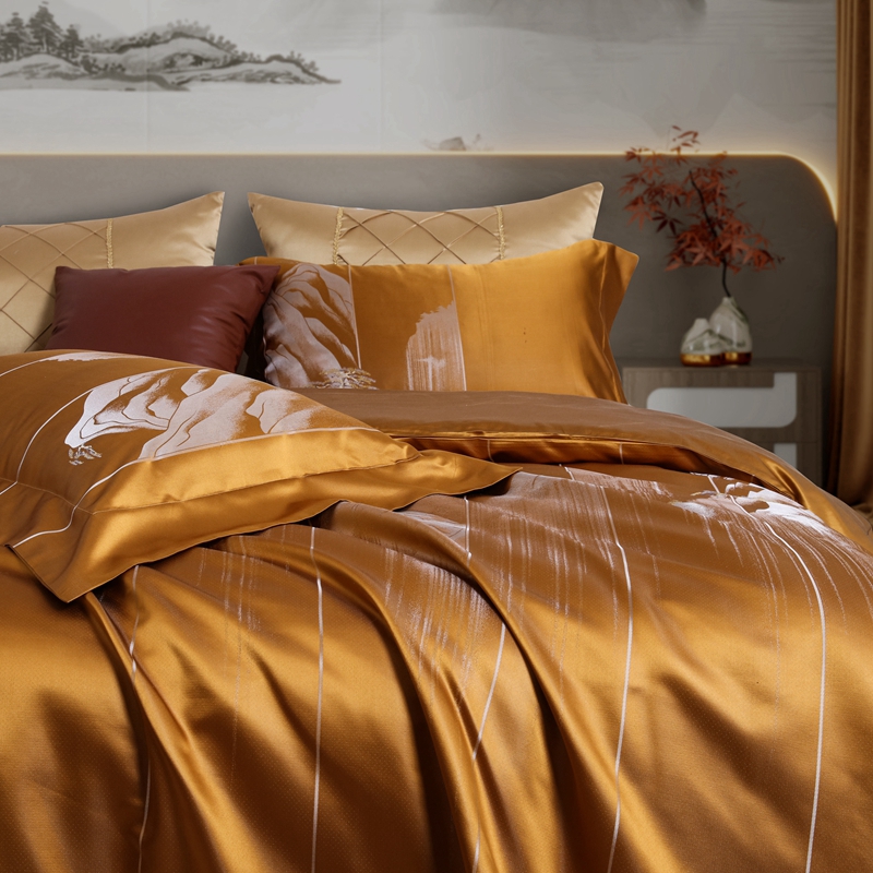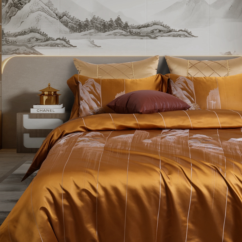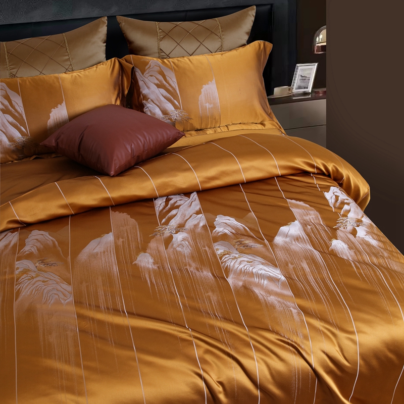 商品名称:晋瑞 2023新款色织全真丝四件套 云遐庐山金