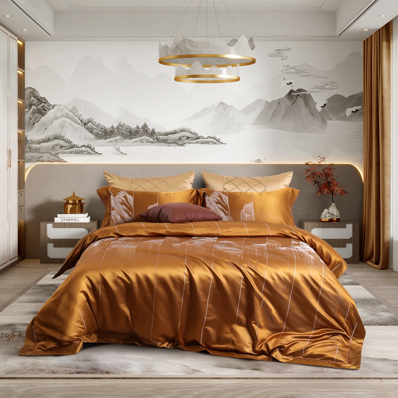 晋瑞 2023新款色织全真丝四件套 云遐庐山金