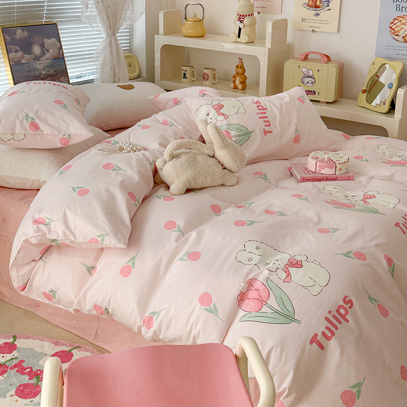昔可 2023新款全棉春日氛围系列四件套 露思兔兔