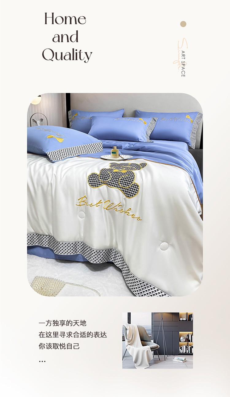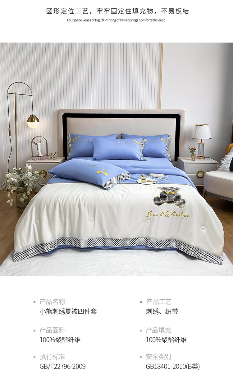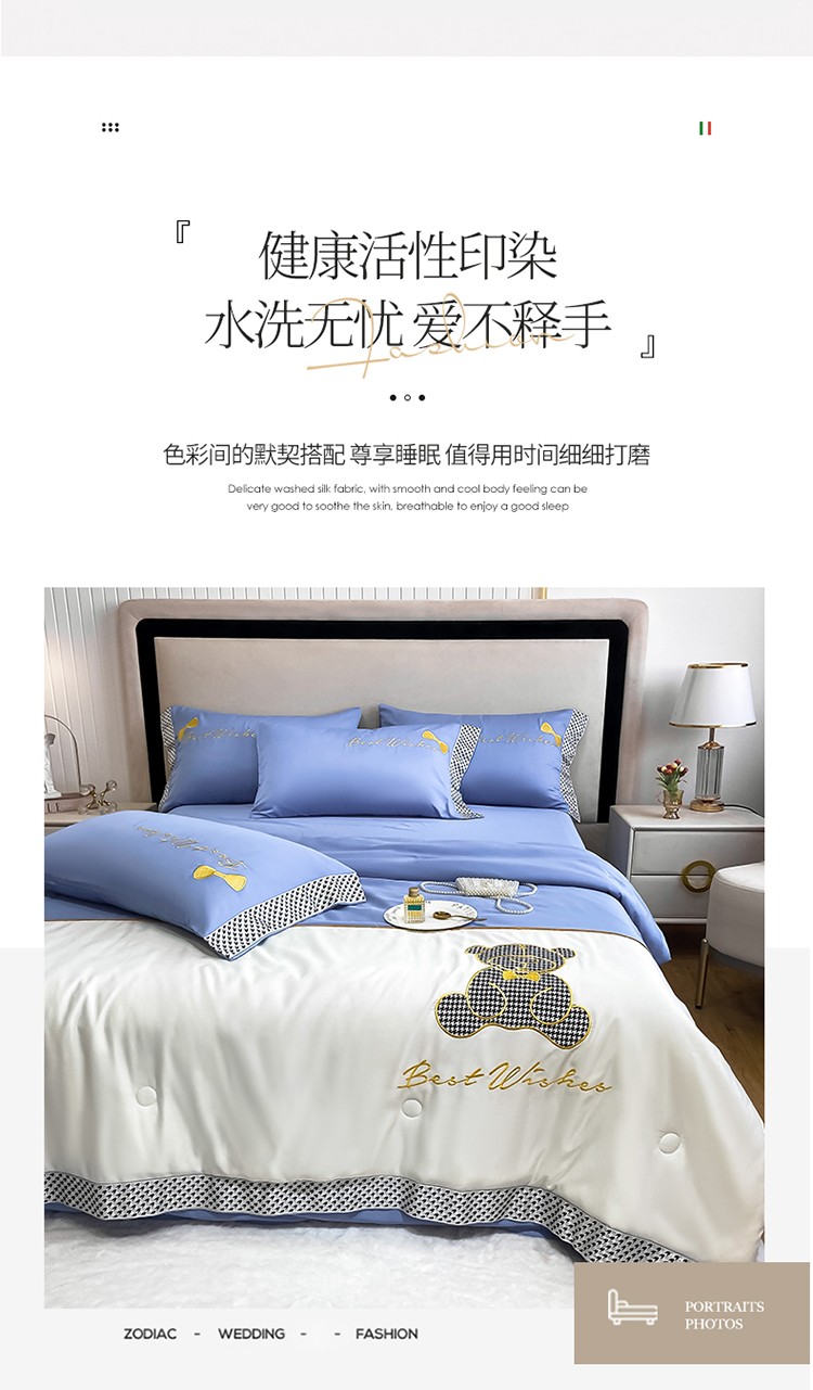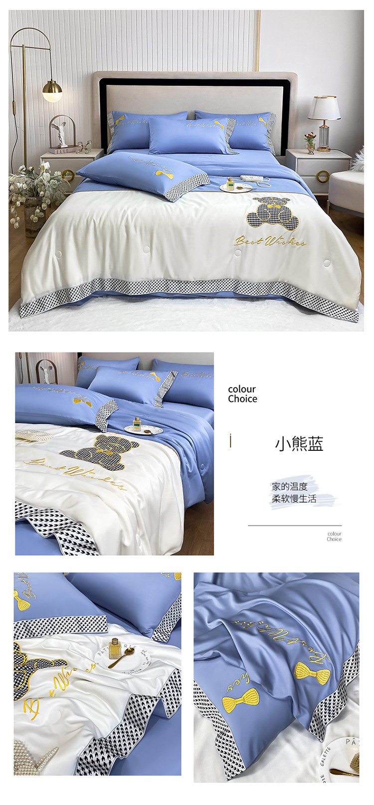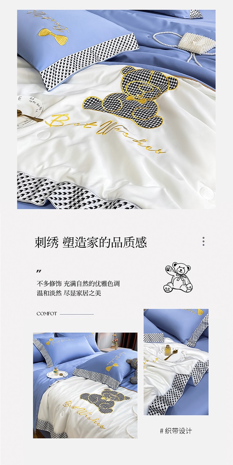 商品名称:吾诺 2023新款小熊刺绣水洗天丝夏被四件套 小熊蓝