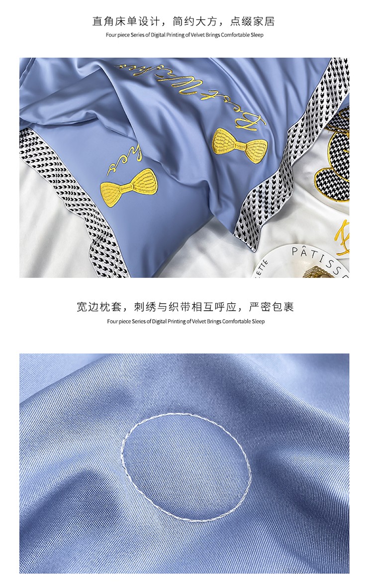 (总)吾诺 双拼角工艺数码牛奶绒四件套 飞边拼角重工艺 -芳华系列,花醉蝶,麦田-紫,锦绣芳华,秘境,熏衣草,烟雨森林