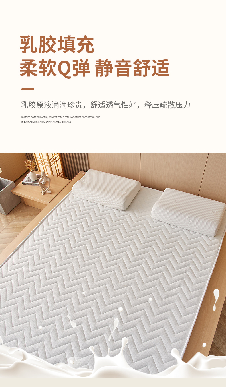 (总)时奥 2023新款学生针织棉乳胶护脊床垫,白色