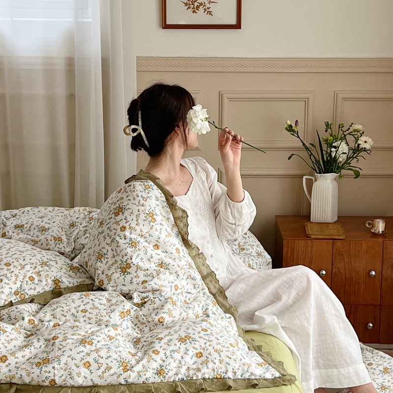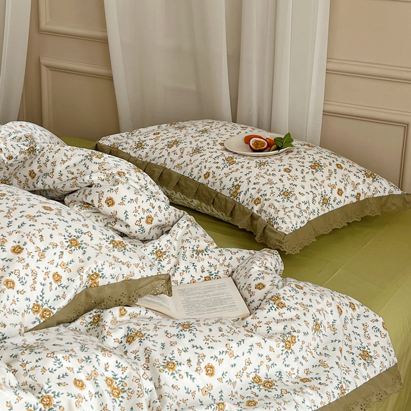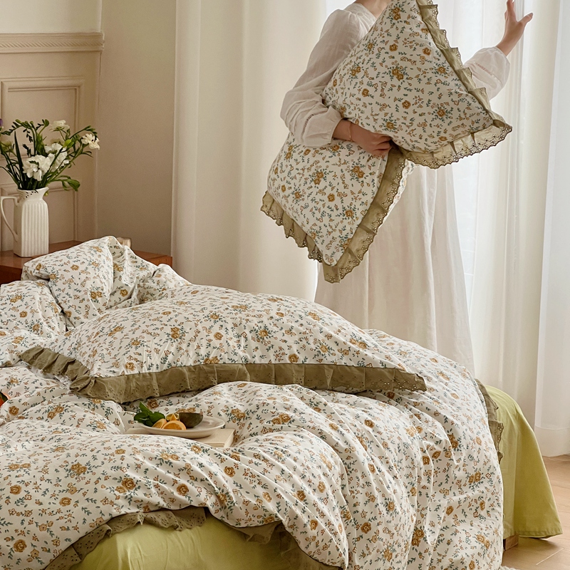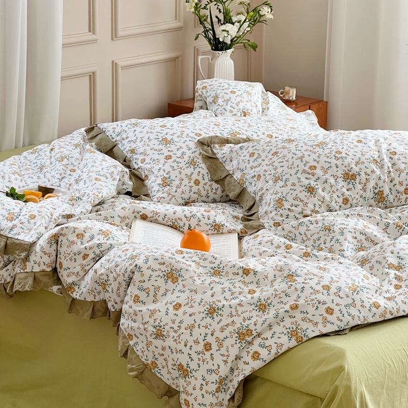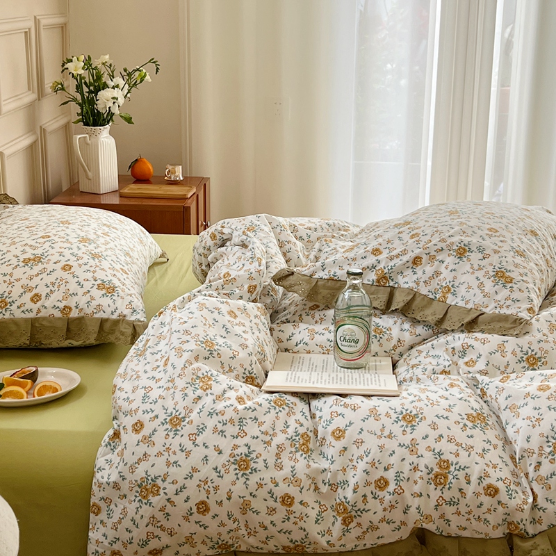 梦享生活家居 2023新款全棉水洗棉花边四件套 盛夏时光