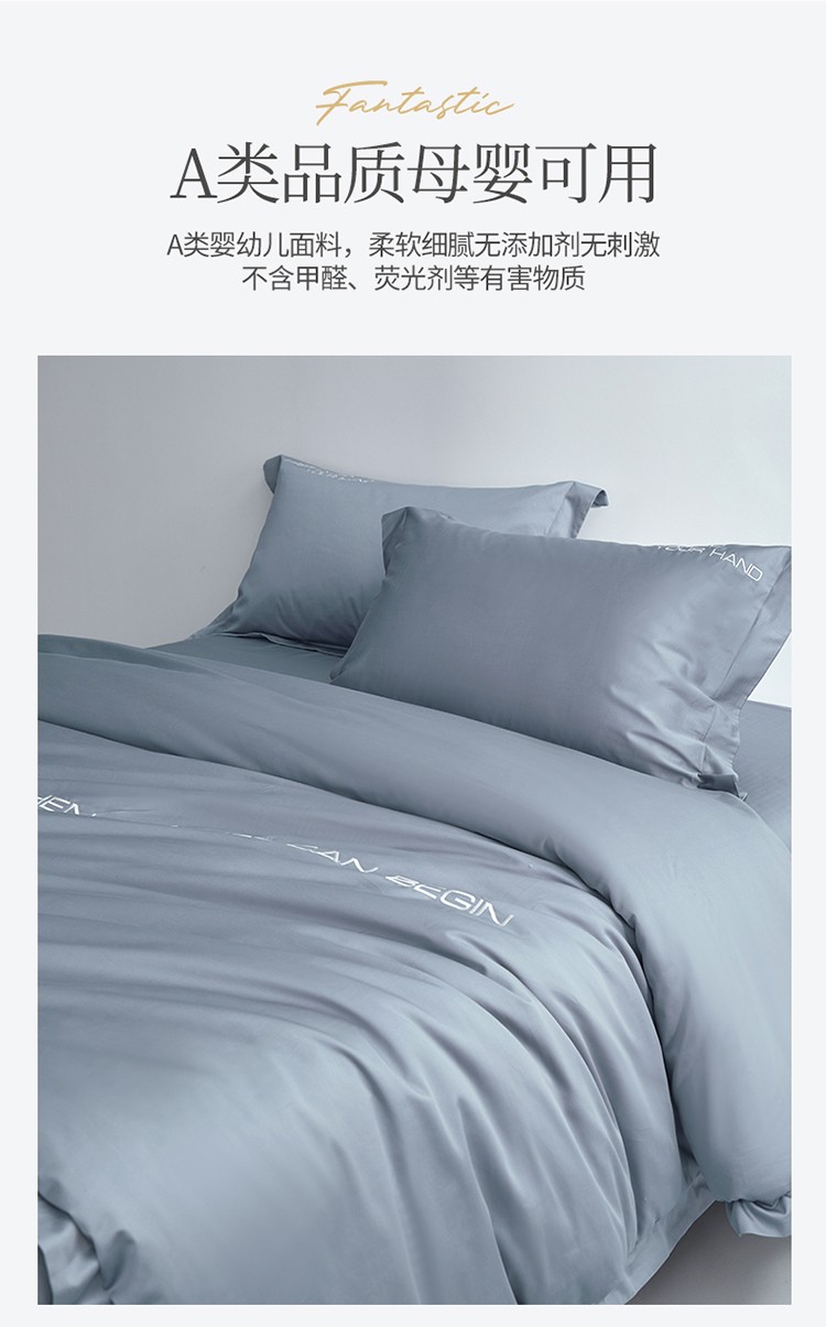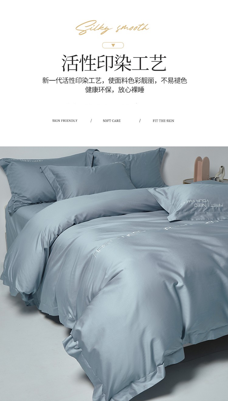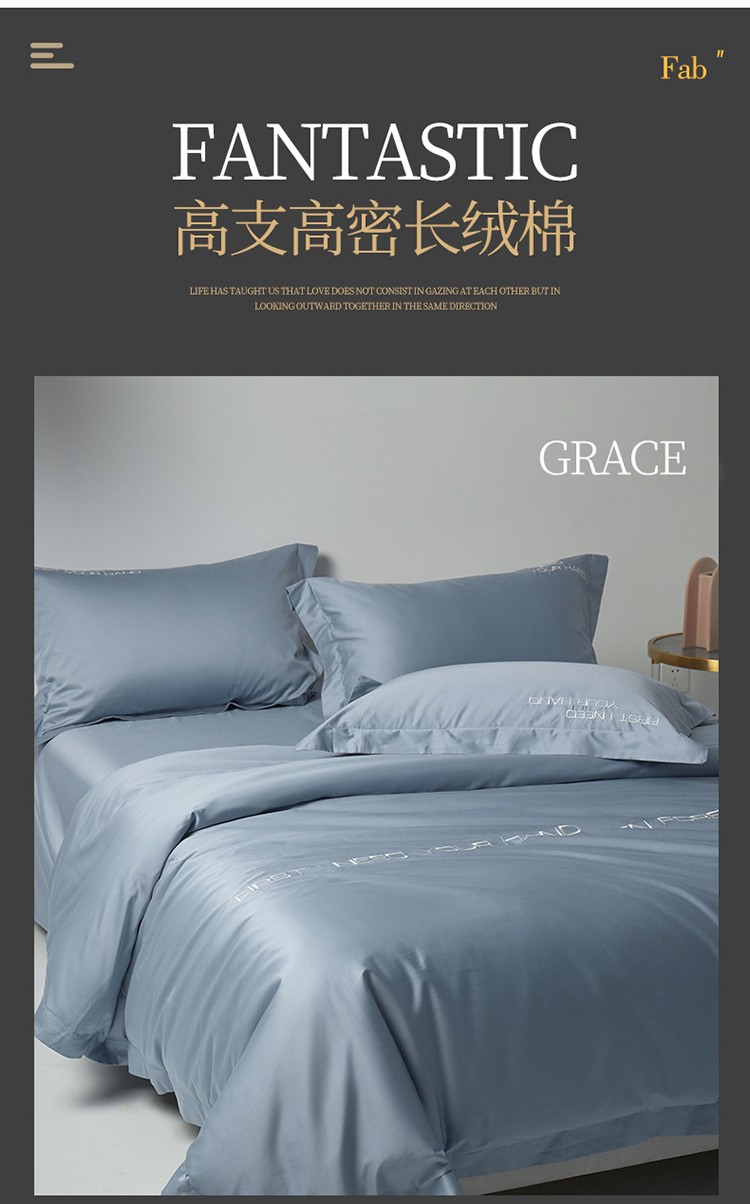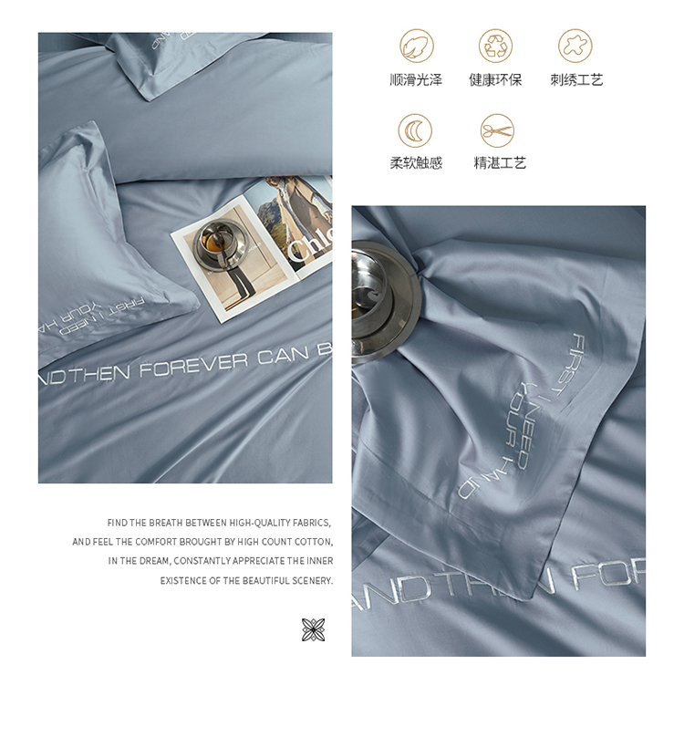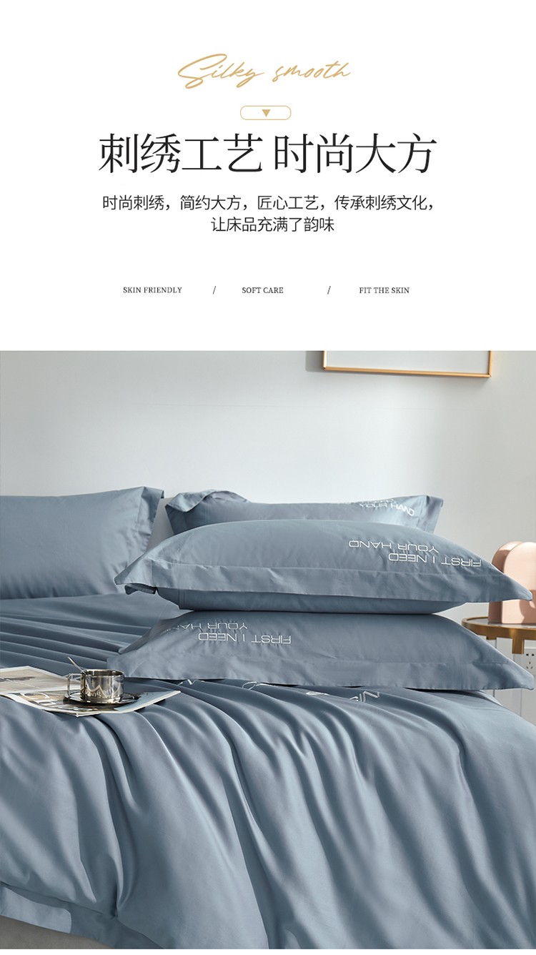 商品名称:米奈 2024年新款长绒棉刺绣四件套-莱恩 海青灰