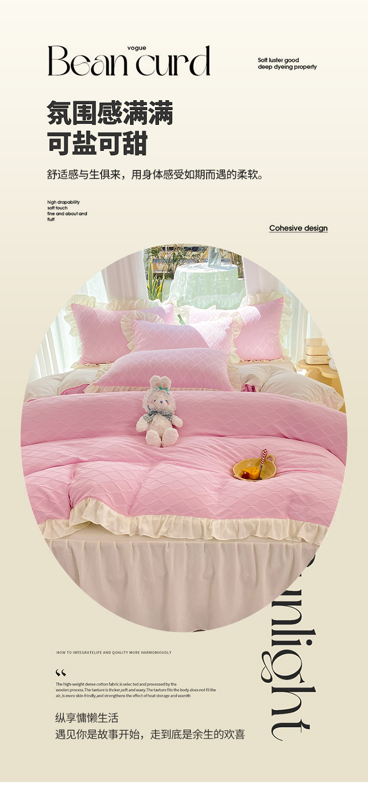 (总)芭比蔓家纺 2025新款亲肤磨毛法式浪漫四件套-依恋,依恋-粉色,依恋-蓝色,依恋-绿色,依恋-米色,依恋-玉色