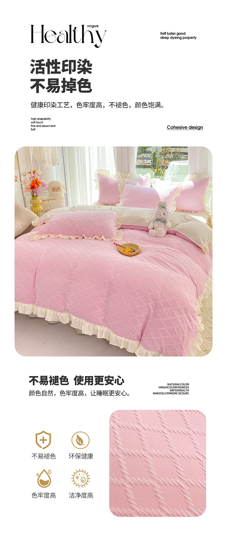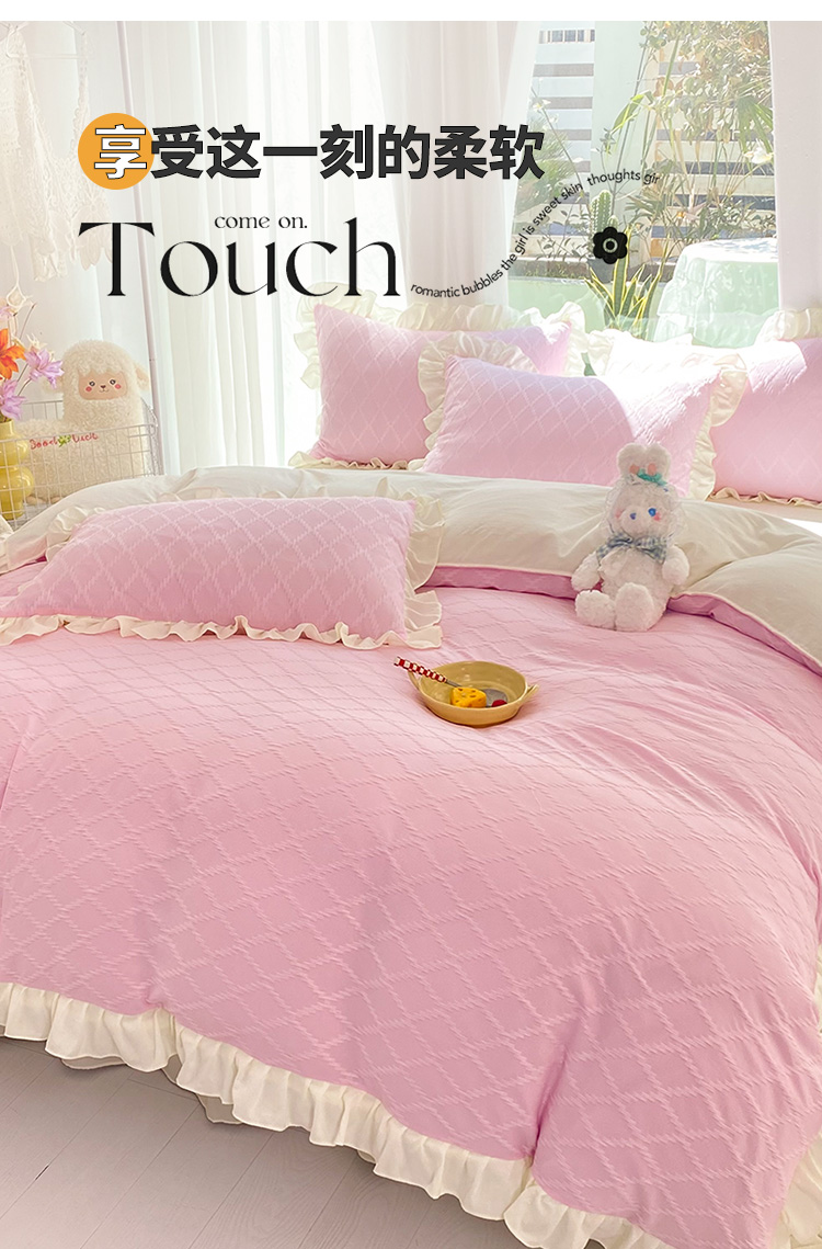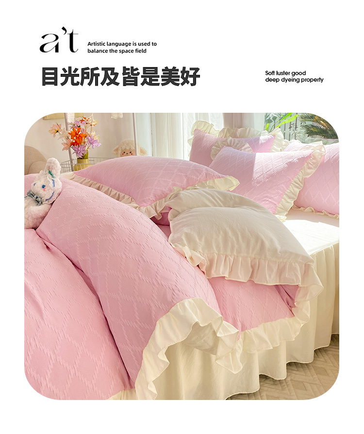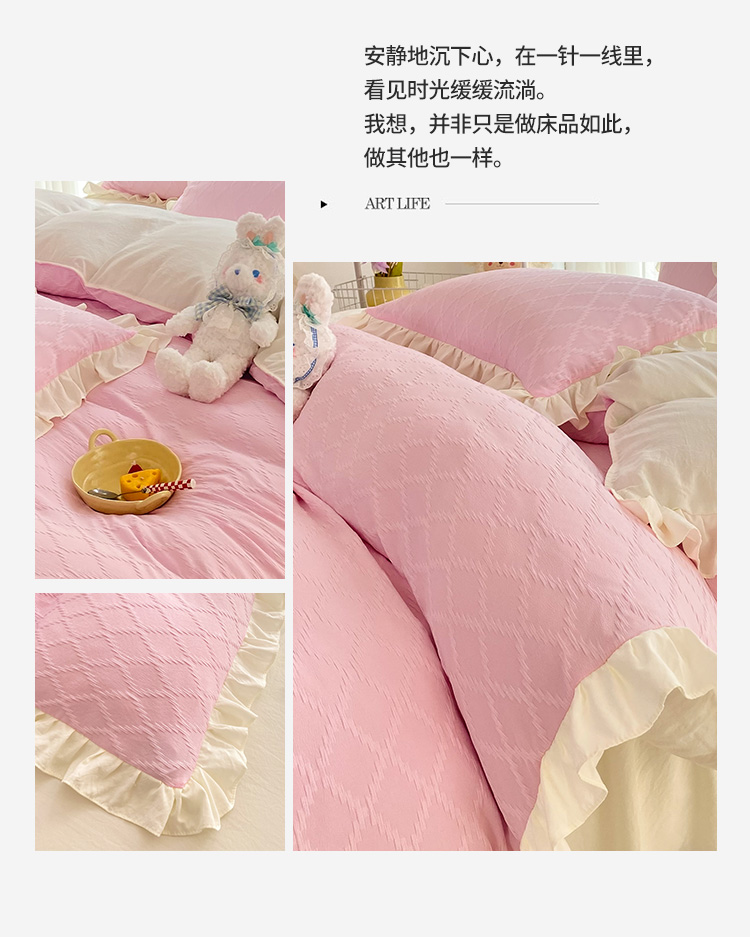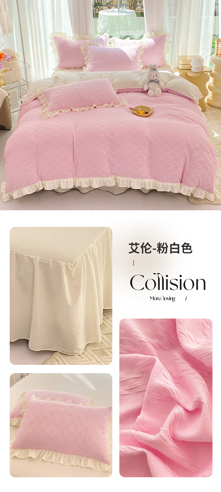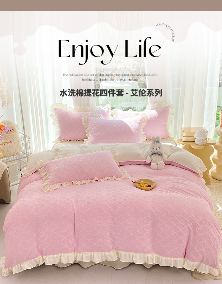 商品名称:芭比蔓家 2024新款艾伦系列水洗棉提花四件套 艾伦-粉白