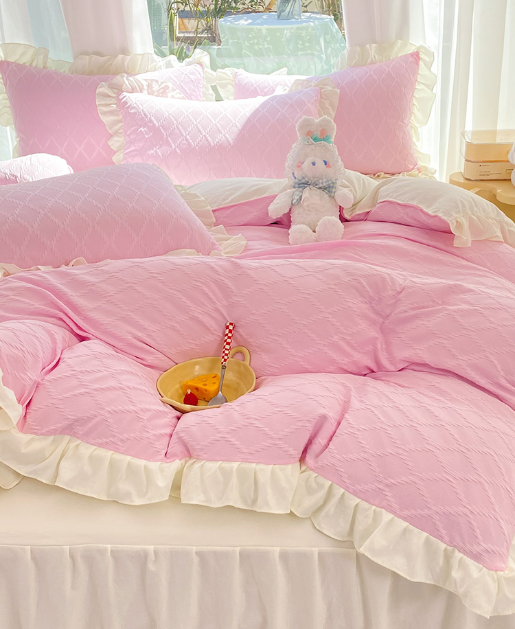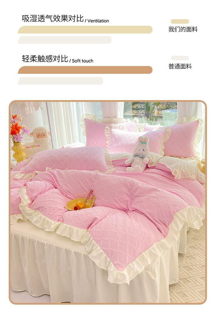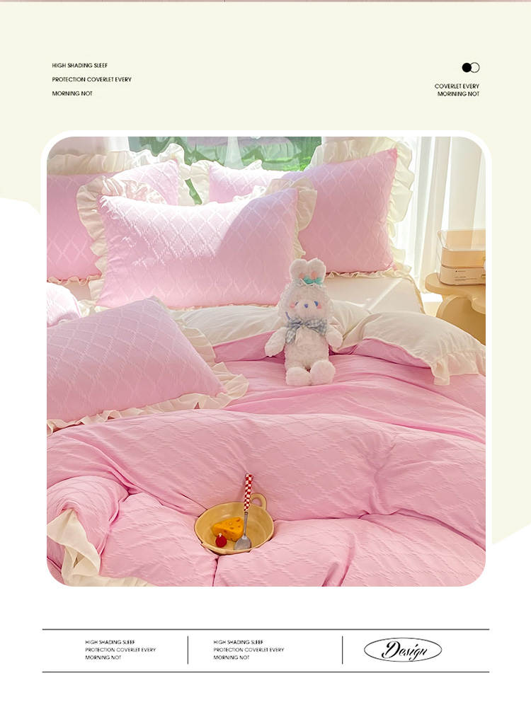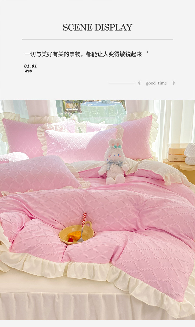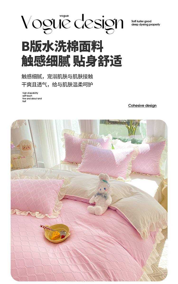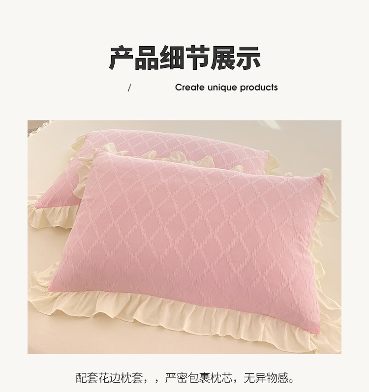 商品名称:芭比蔓家 2024新款艾伦系列水洗棉提花四件套 艾伦-粉白