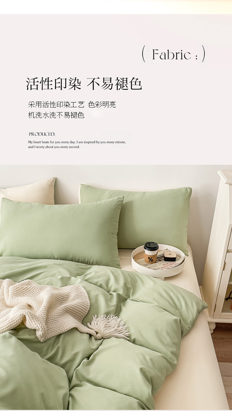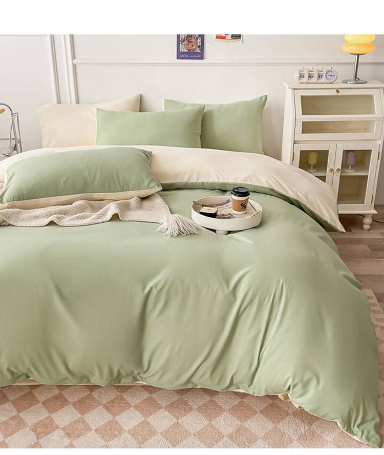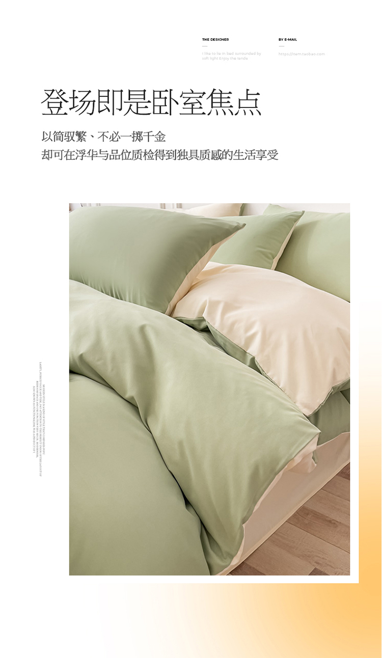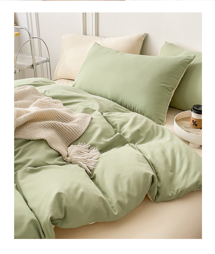商品名称:棠颂 2023新款母婴级水洗棉纯色双拼四件套 浅绿+浅黄