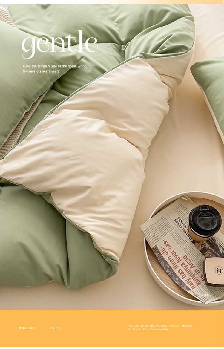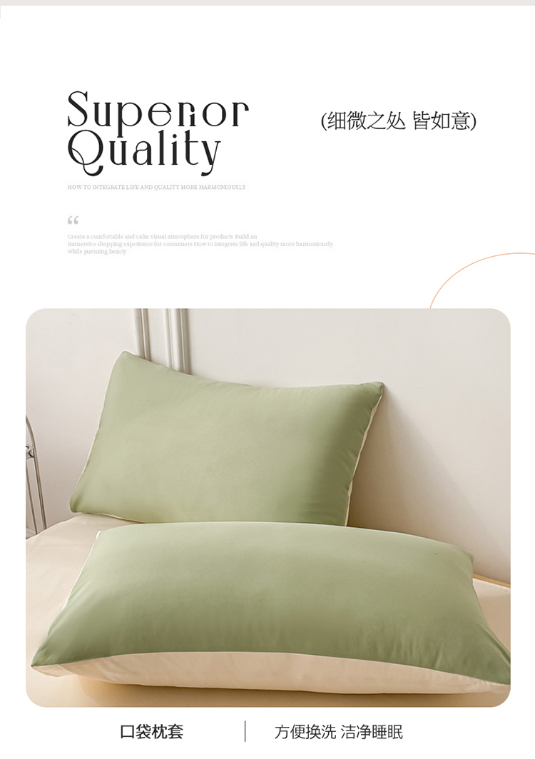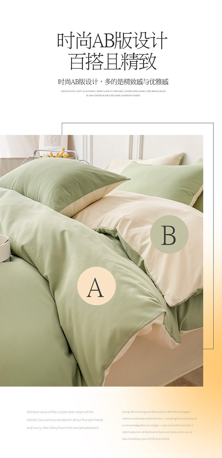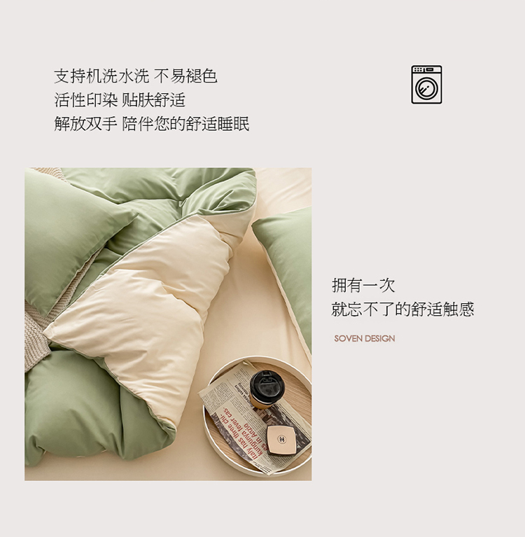 商品名称:棠颂 2023新款母婴级水洗棉纯色双拼四件套 浅绿+浅黄