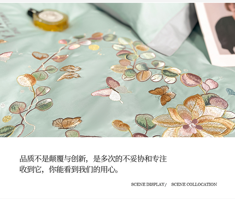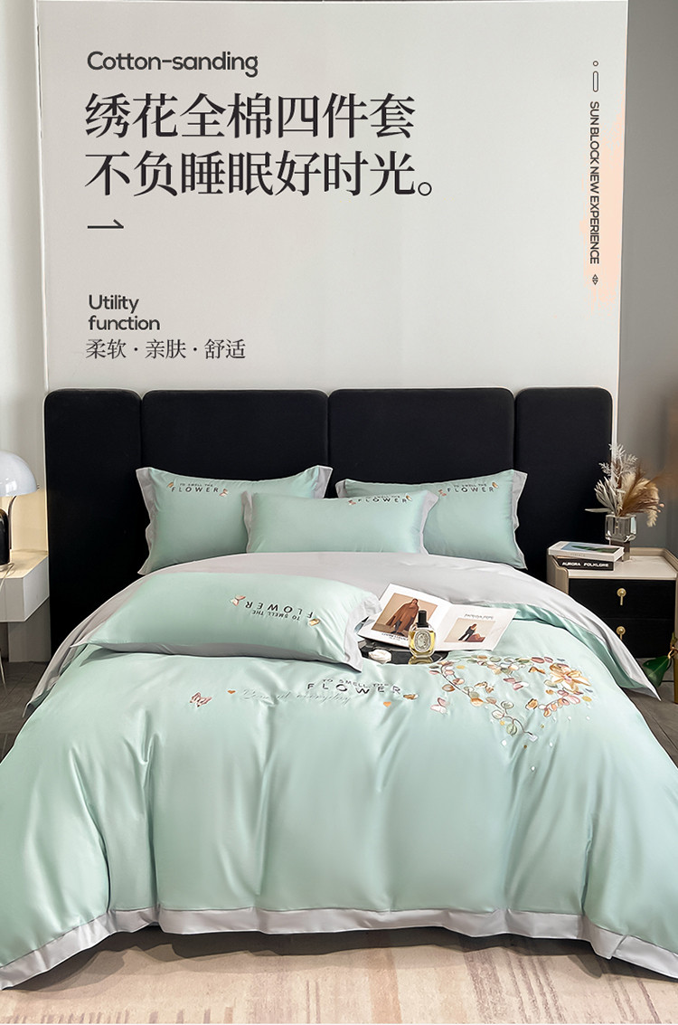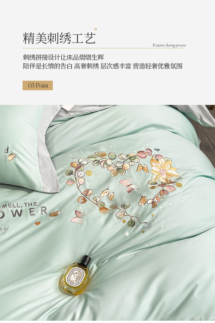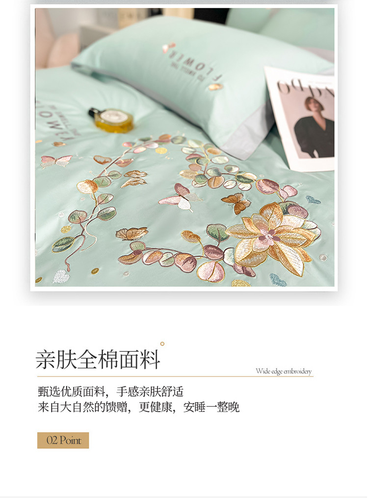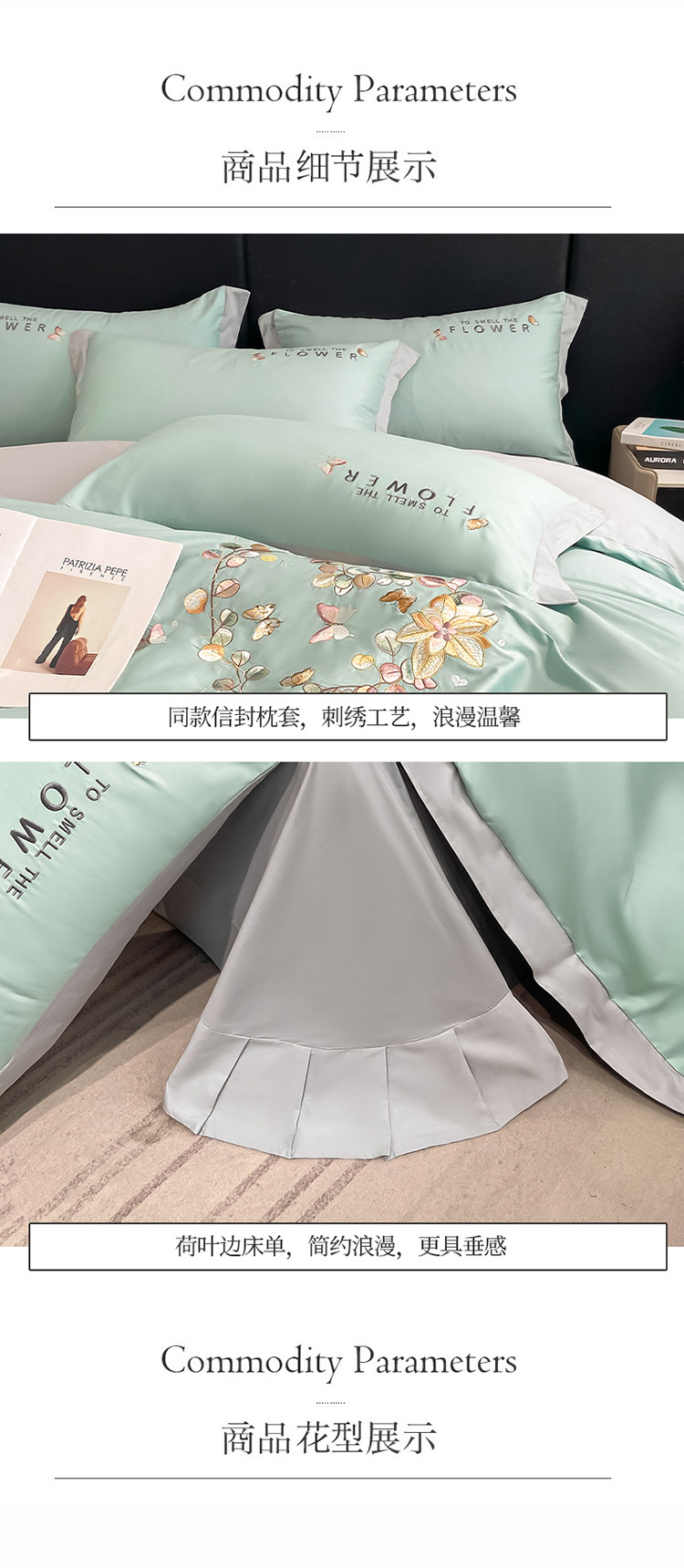 商品名称:七七 2025新款绣花全棉四件套-布兰卡 水绿